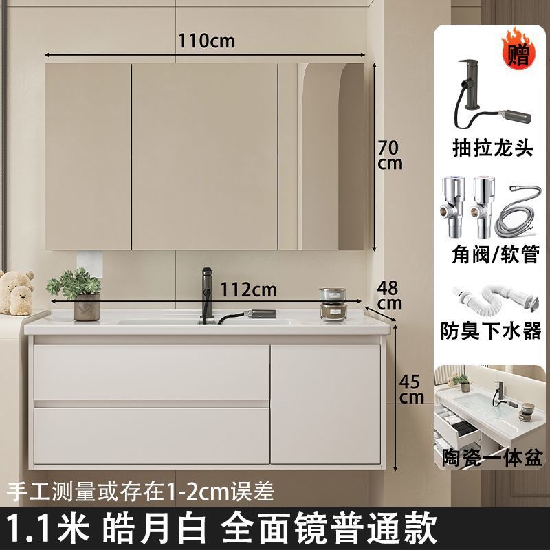 • Haoyue 흰색 일반 전체 거울 캐비닛 - 110cm 세라믹 일체형 세면대 + 액세서리 전체 세트