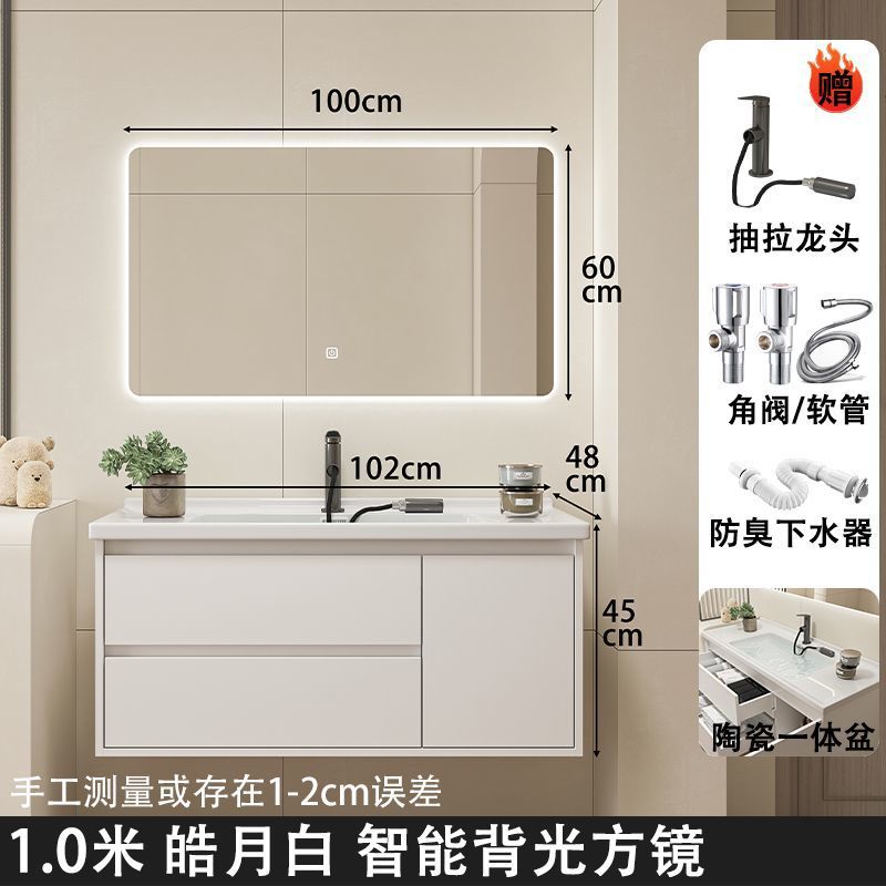 • Haoyuebai 스마트 풀 미러 캐비닛 - 100cm 세라믹 일체형 세면대 + 액세서리 풀 세트