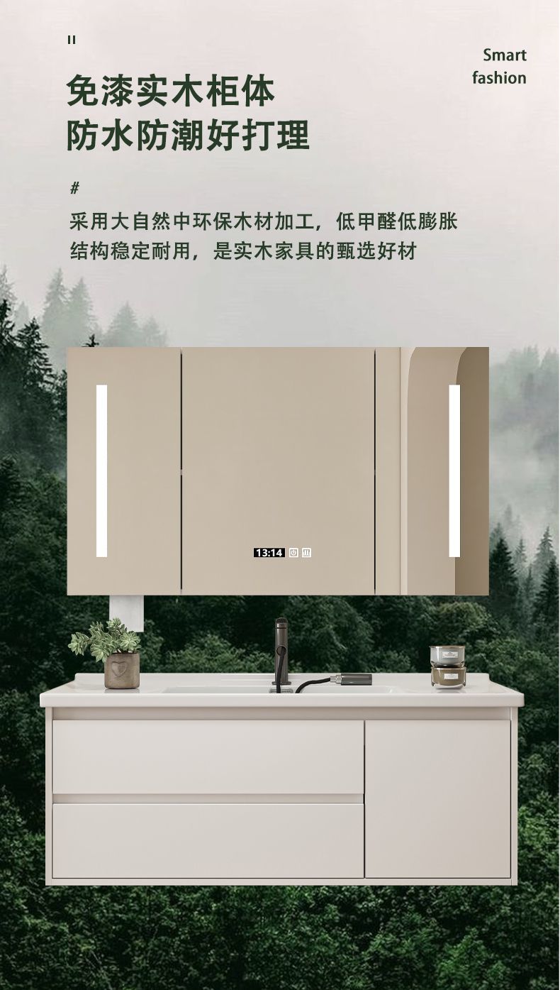 • Haoyuebai 스마트 풀 미러 캐비닛 - 70cm 세라믹 일체형 세면대 + 액세서리 풀 세트