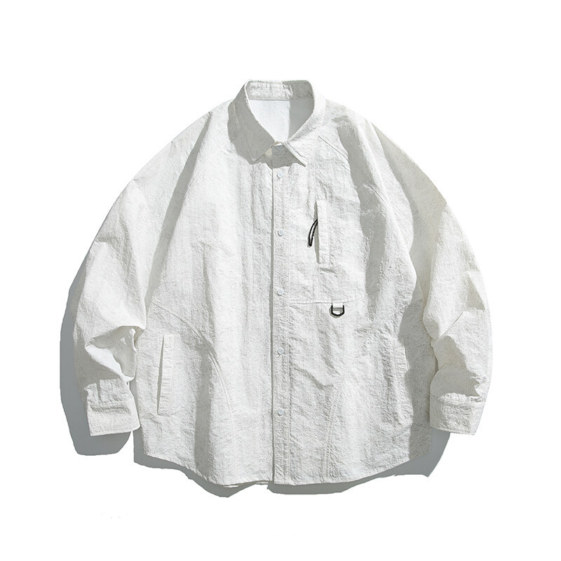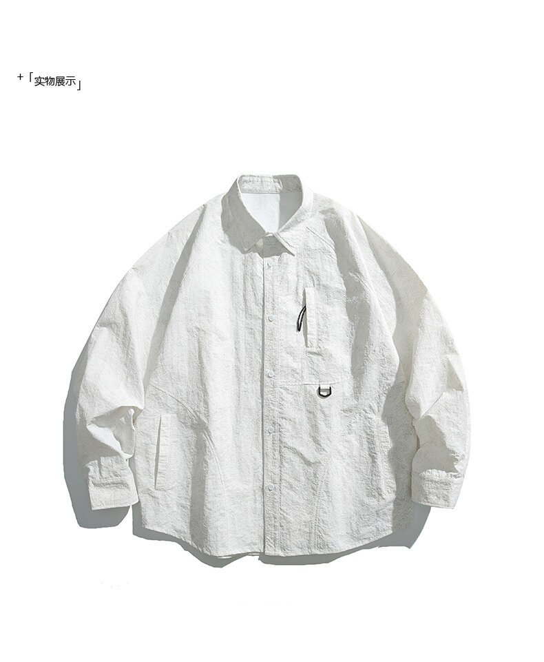City Fanpin 2025 봄 남자 일본 느슨한 캐주얼 단색 스프레이 그린 셔츠 도시 소년 셔츠스토어 가기