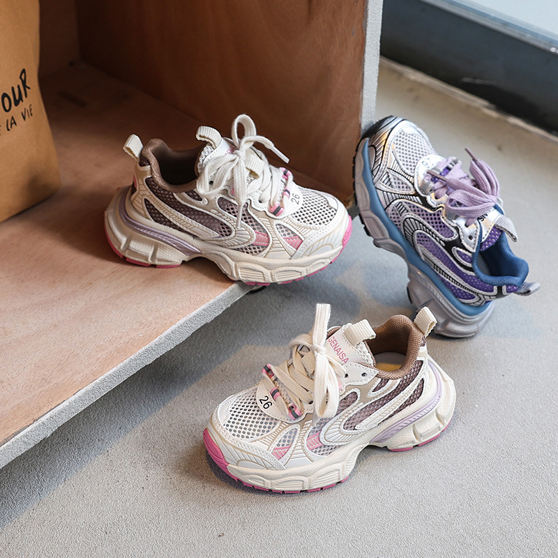 2025 봄과 여름 폭발 어린이 패션 싱글 메쉬 대비 컬러 경량 토레 신발 소년과 소녀 경량 소프트 하단 러닝화