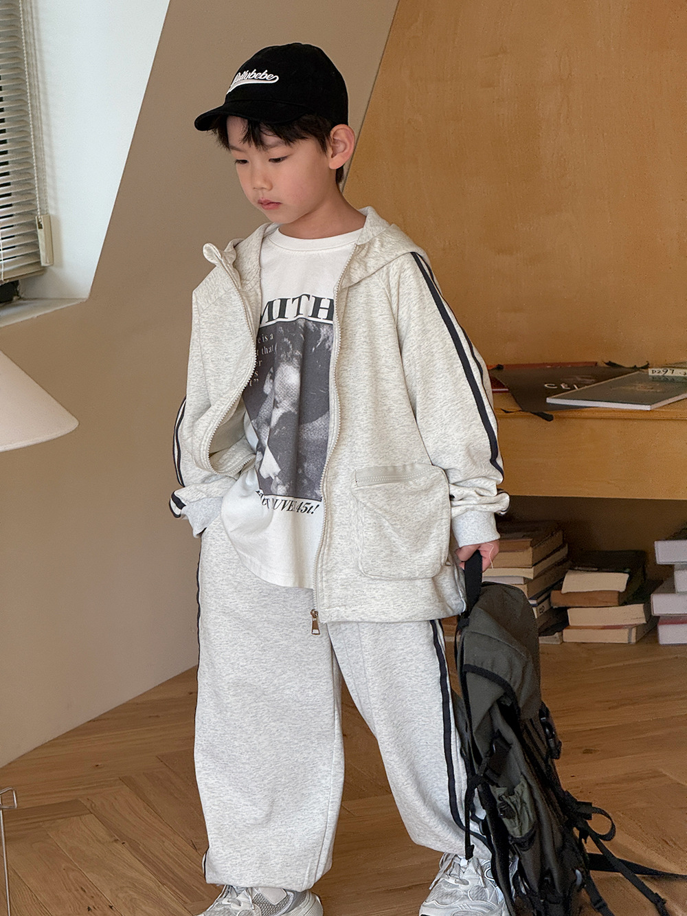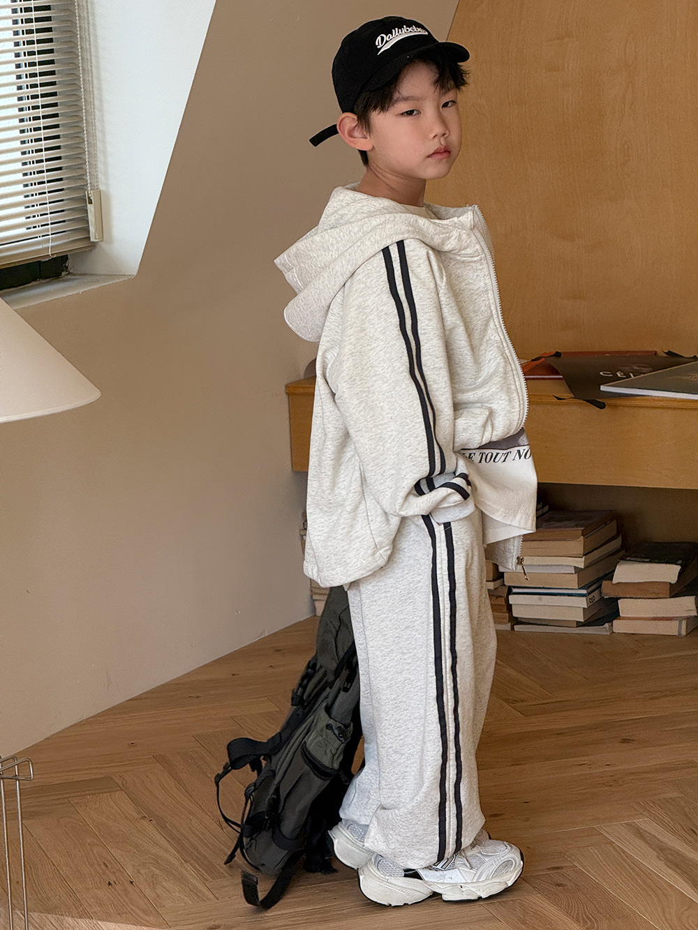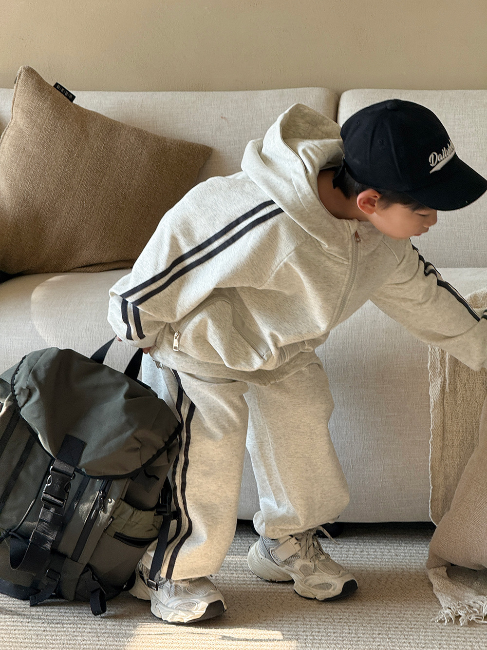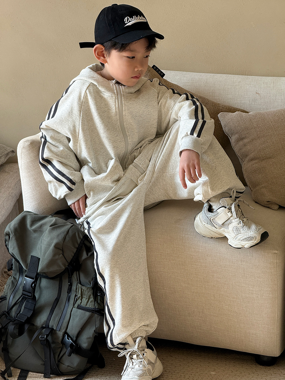 소년 봄 가을 세트 2025 새로운 한국식 작업복 어린이 스포츠 세트 유행 운동복 바지 투피스 세트스토어 가기