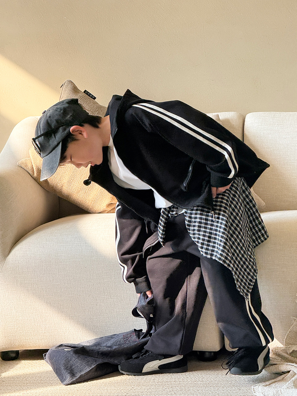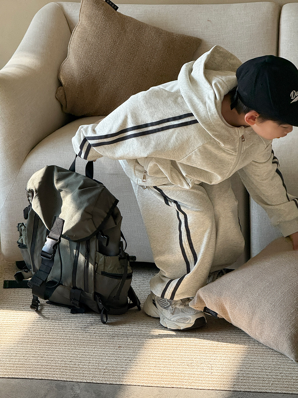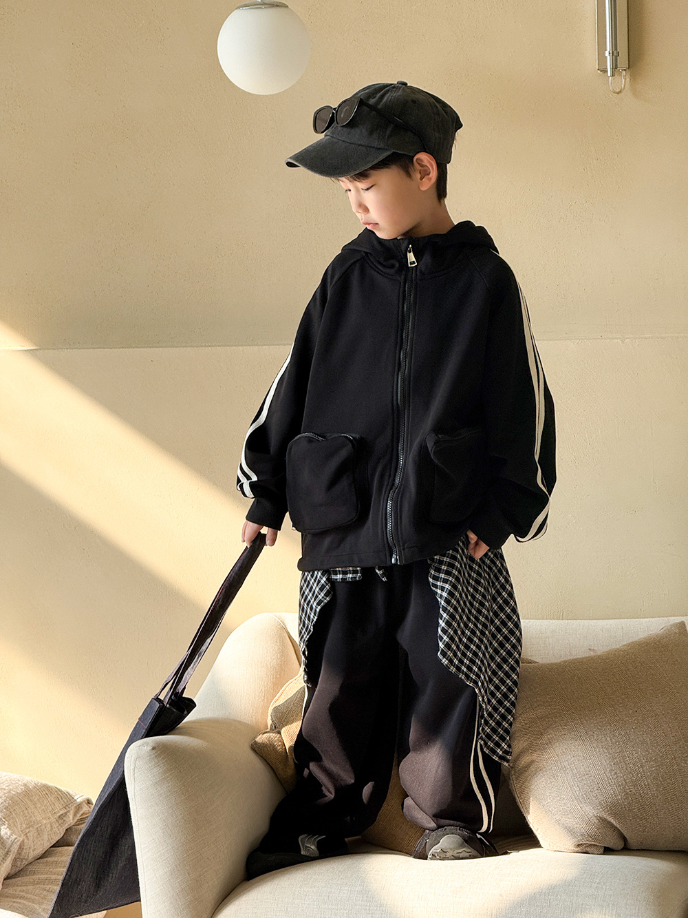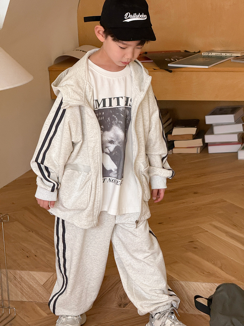 소년 봄 가을 세트 2025 새로운 한국식 작업복 어린이 스포츠 세트 유행 운동복 바지 투피스 세트스토어 가기