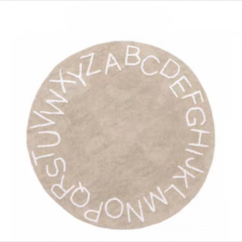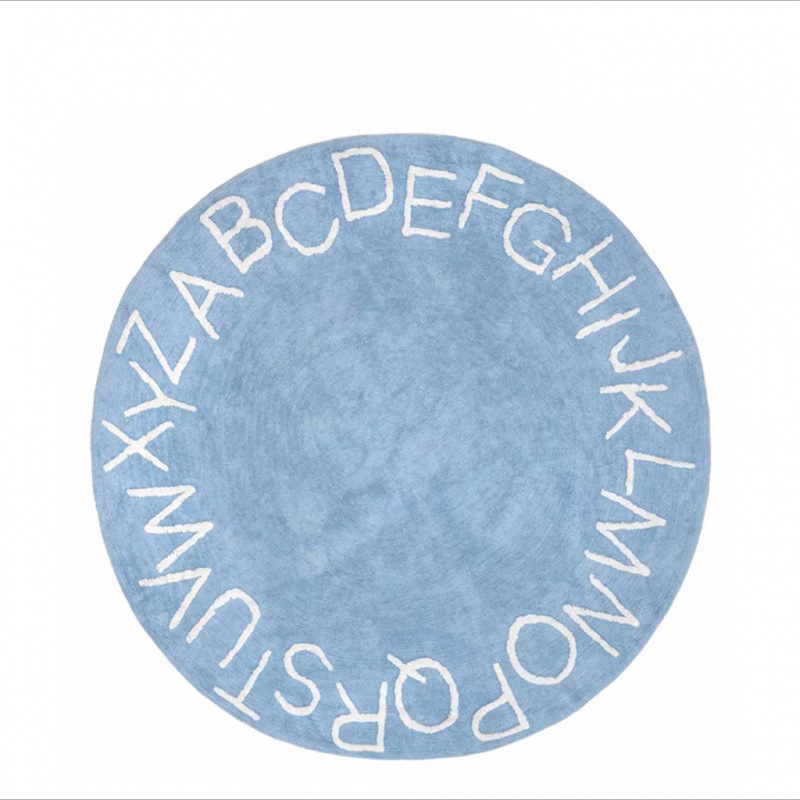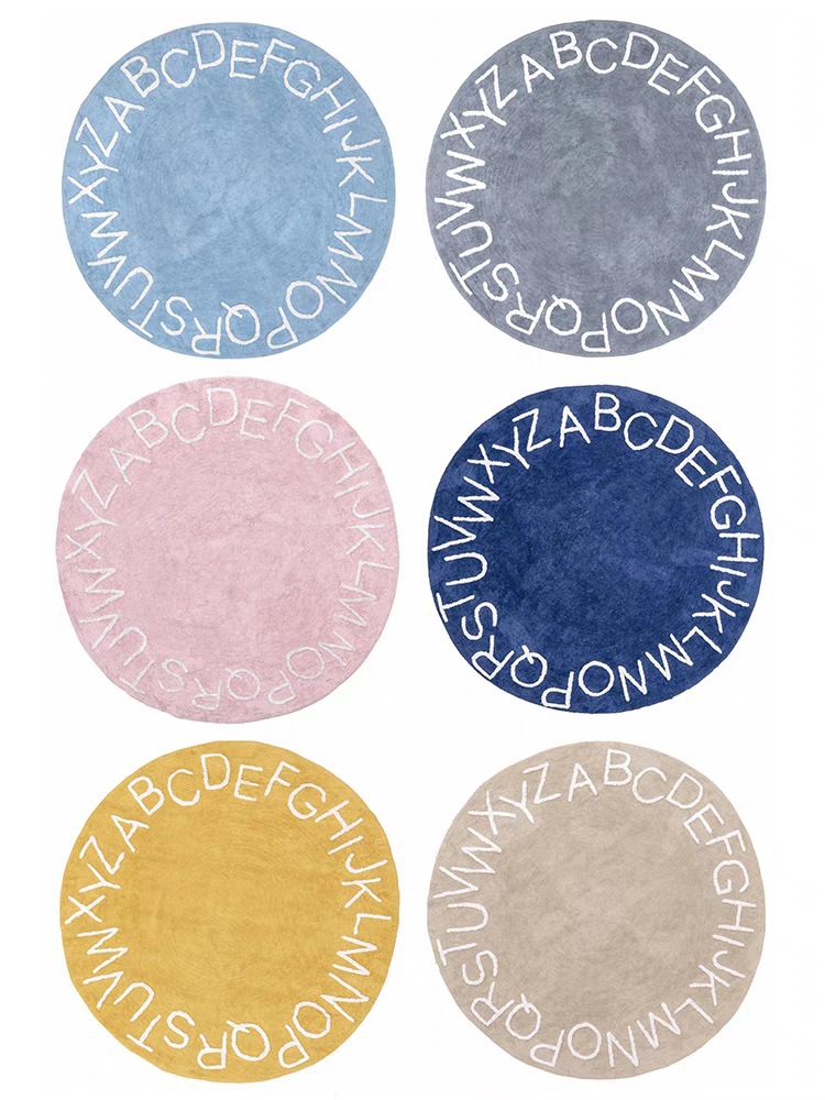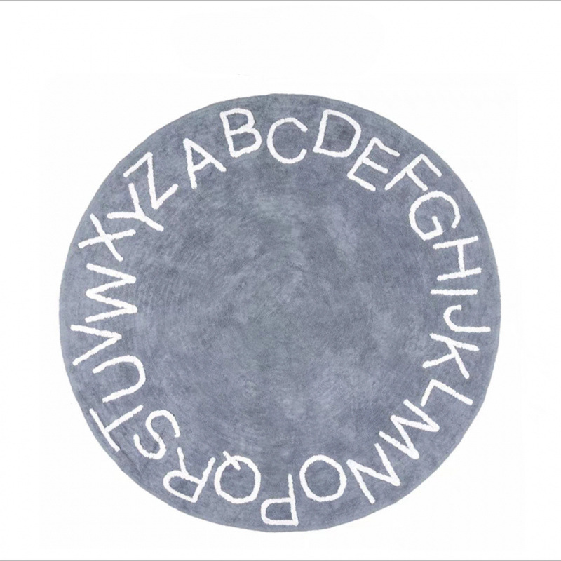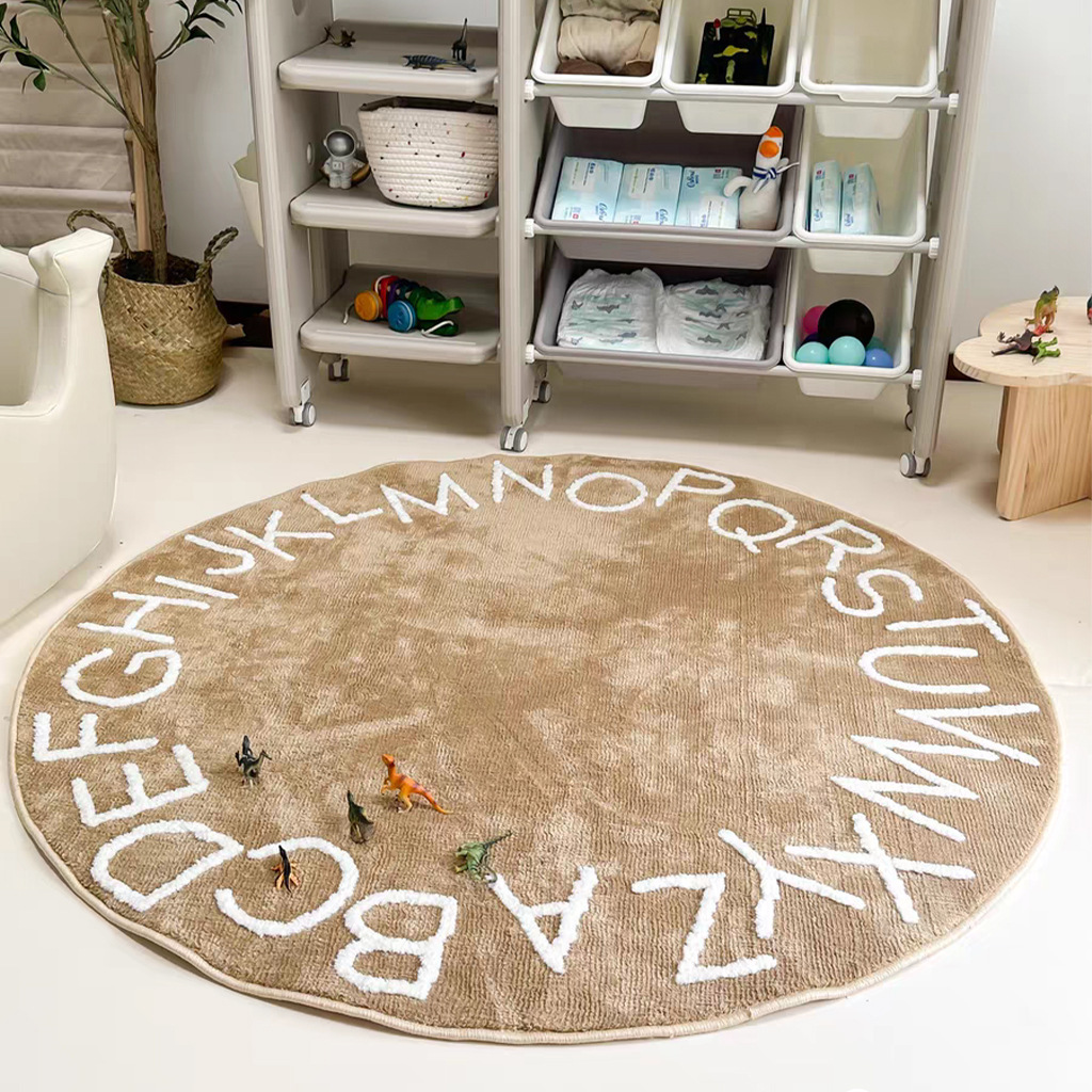 모조 캐시미어 발매트, 심플한 문자무늬 소파 거실 원형 카펫, 미끄럼 방지 및 오염 방지 침대 옆 매트, 귀여운 어린이방용