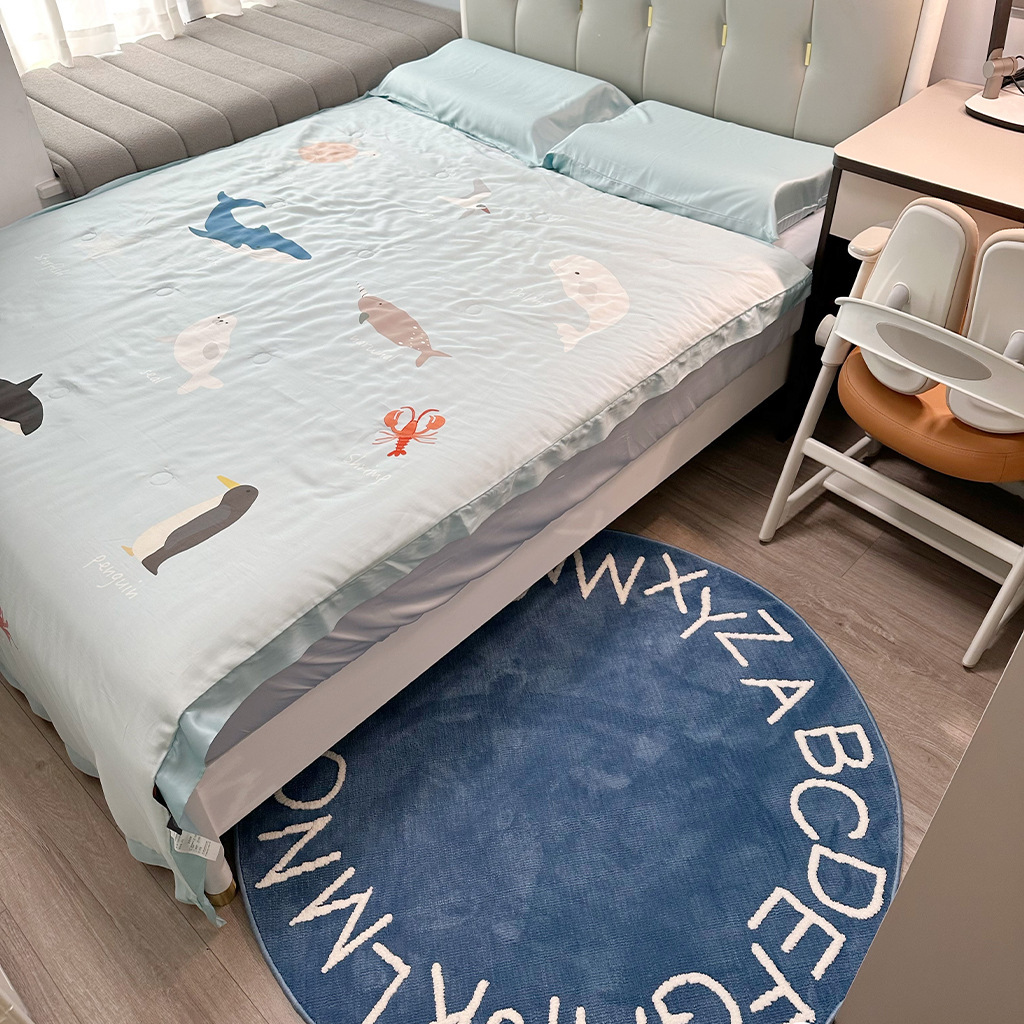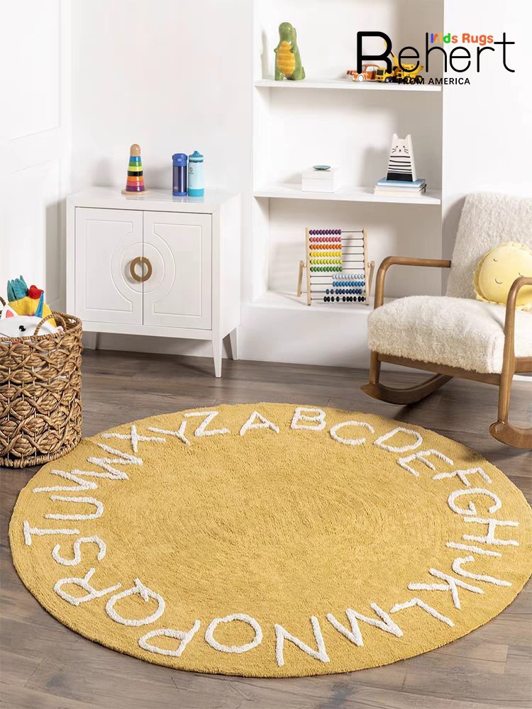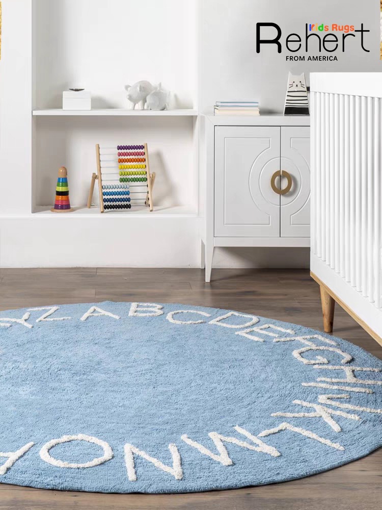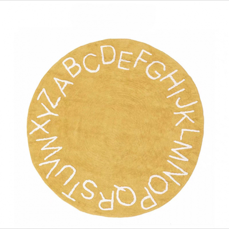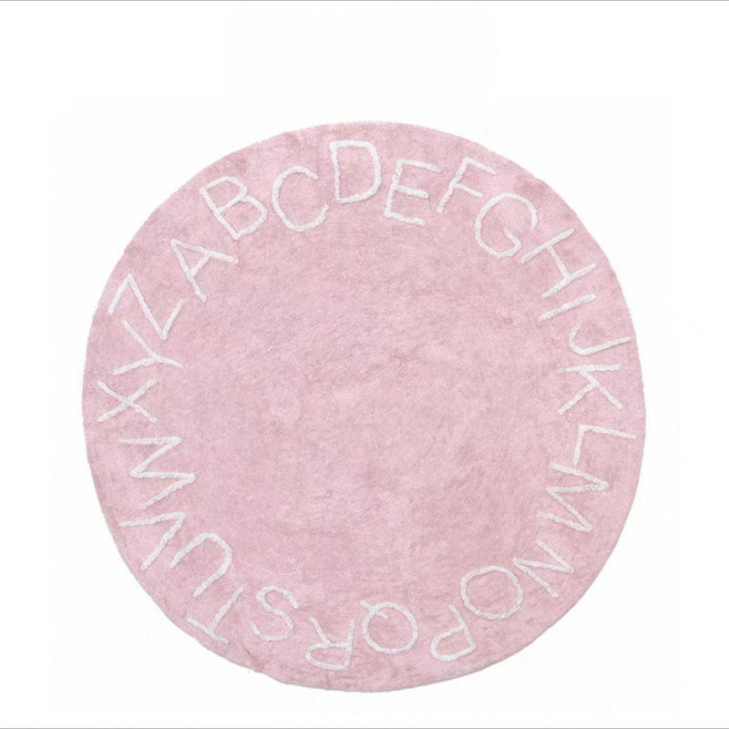 모조 캐시미어 발매트, 심플한 문자무늬 소파 거실 원형 카펫, 미끄럼 방지 및 오염 방지 침대 옆 매트, 귀여운 어린이방용
