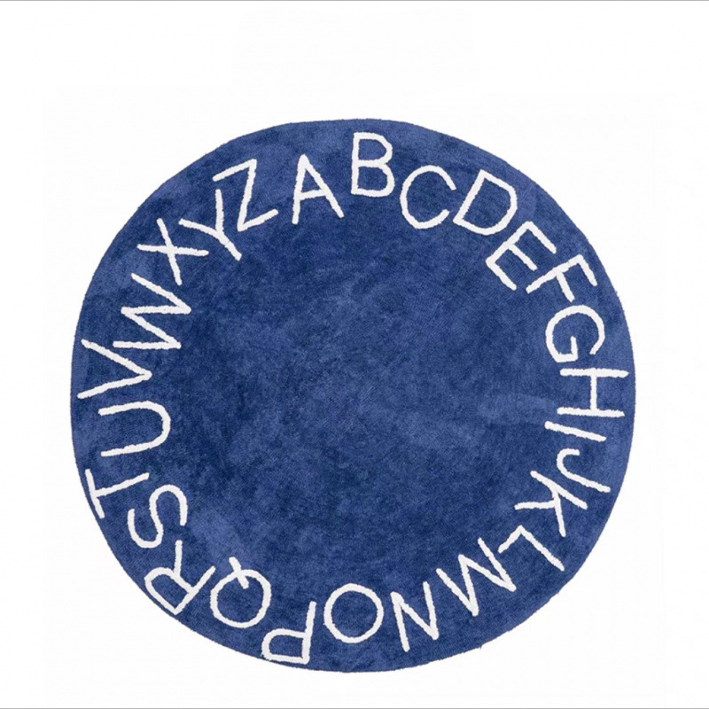 모조 캐시미어 발매트, 심플한 문자무늬 소파 거실 원형 카펫, 미끄럼 방지 및 오염 방지 침대 옆 매트, 귀여운 어린이방용스토어 가기