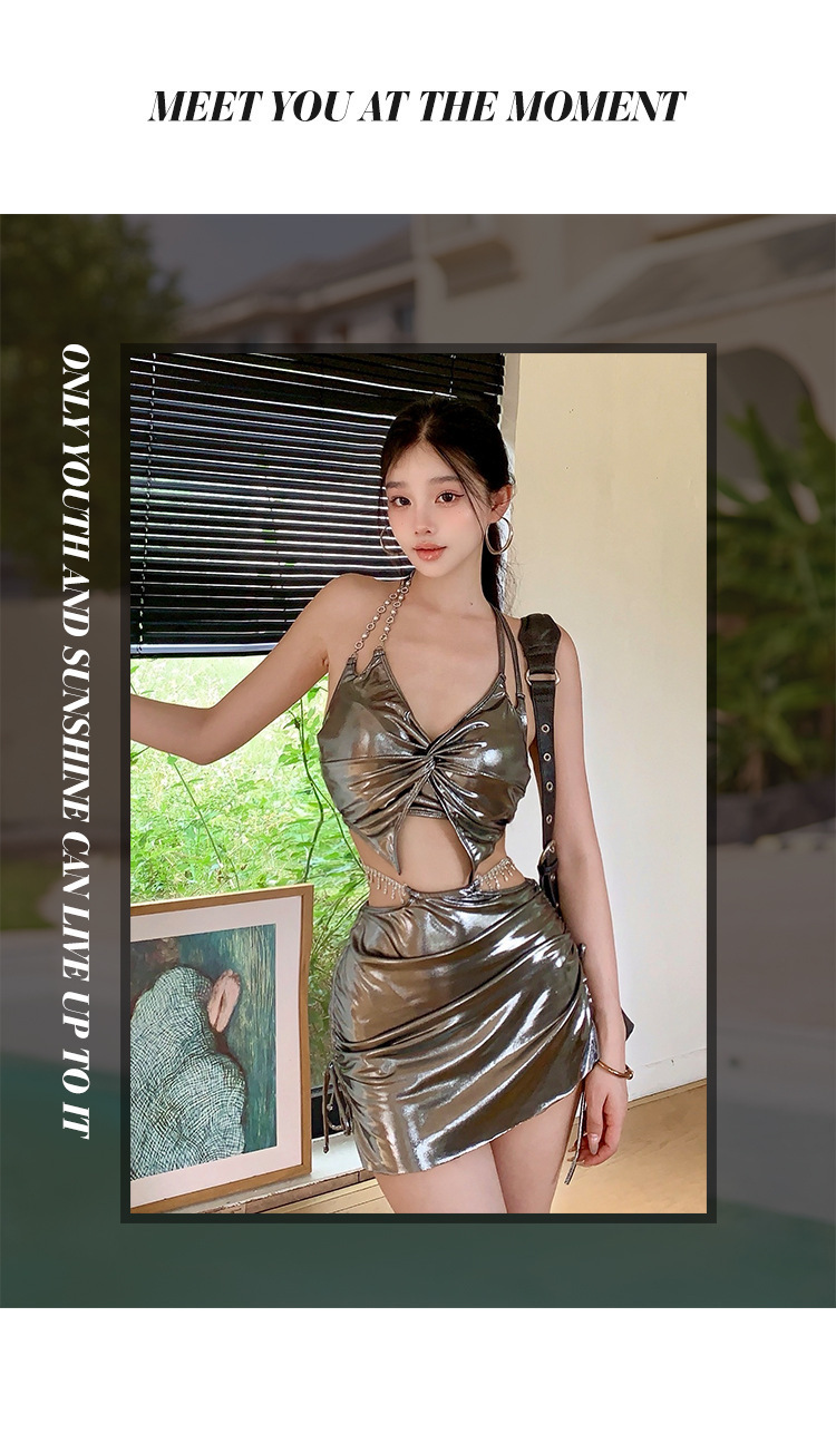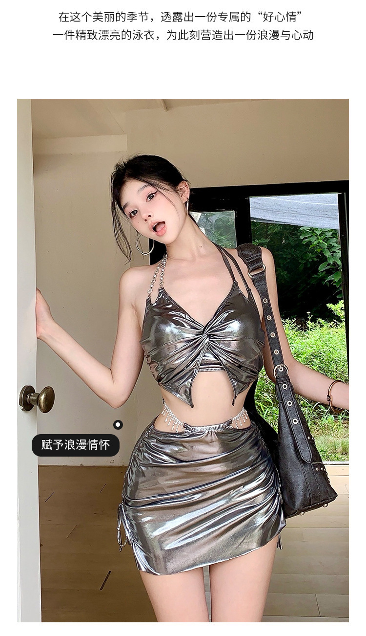 섹시한 태국 스타일 뜨거운 소녀 수영복 여성 Instagram 스타일 분할 스커트 3 피스 세트 나이트 클럽 스타일 실버 스커트 온천 수영복스토어 가기