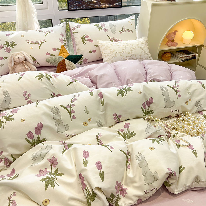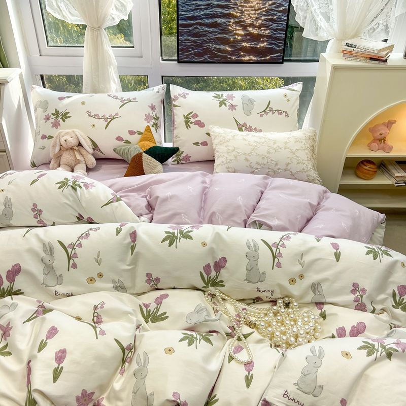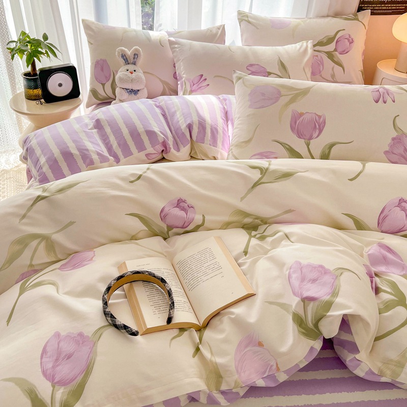 • 튤립 퍼플 [면 100% 트윌] [피부 친화적이고 섬세하게 업그레이드되어 밤새 잠을 잘 수 있도록]