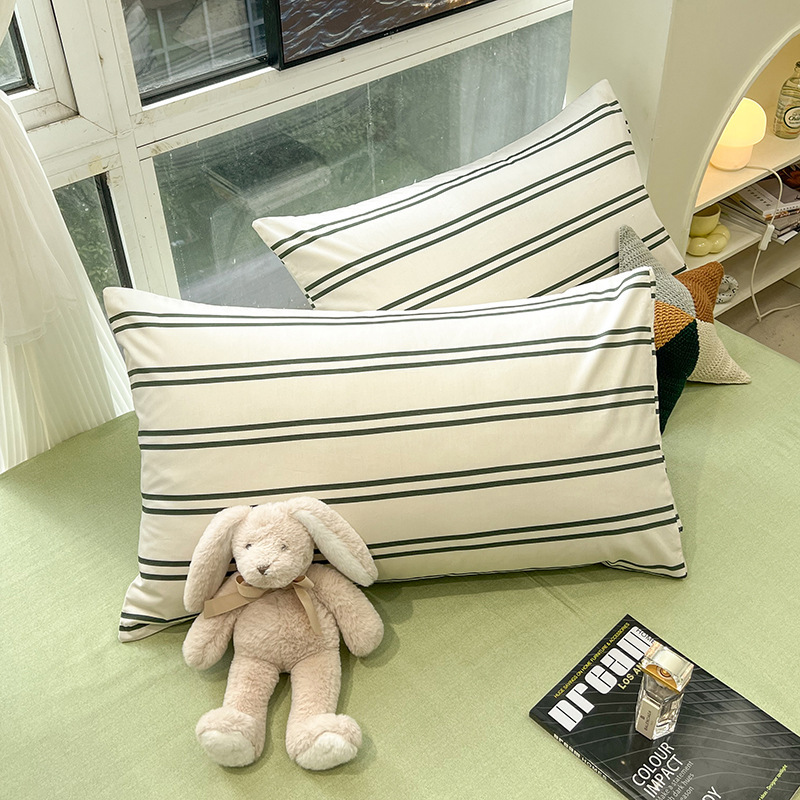 • 럭키라인 그린 [면 100% 트윌] [업그레이드된 피부친화적이고 섬세하며 밤새도록 잠을 잘 수 있도록]