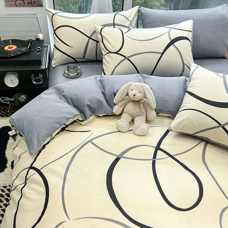 • 심플한 드로잉 [면 100% 트윌] [업그레이드된 피부친화적이고 섬세하며 밤새도록 잠을 잘 수 있도록]