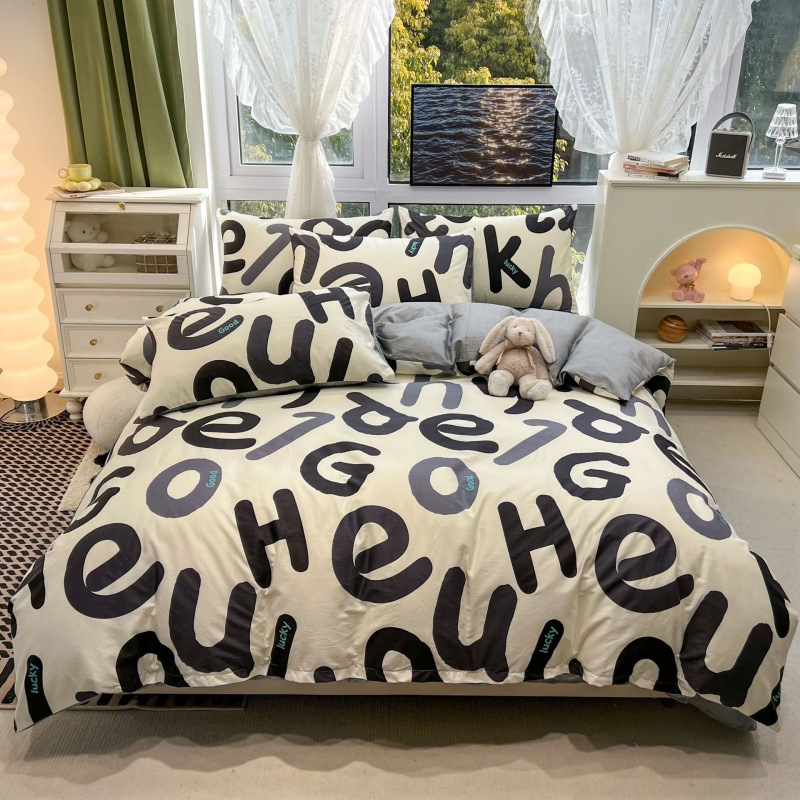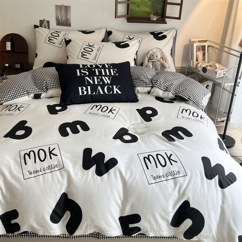 • 체크무늬 글자 [면 100% 트윌] [업그레이드된 피부친화적이고 섬세하며 밤새도록 잠을 잘 수 있도록]