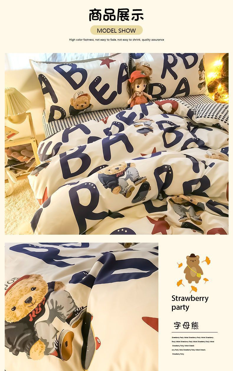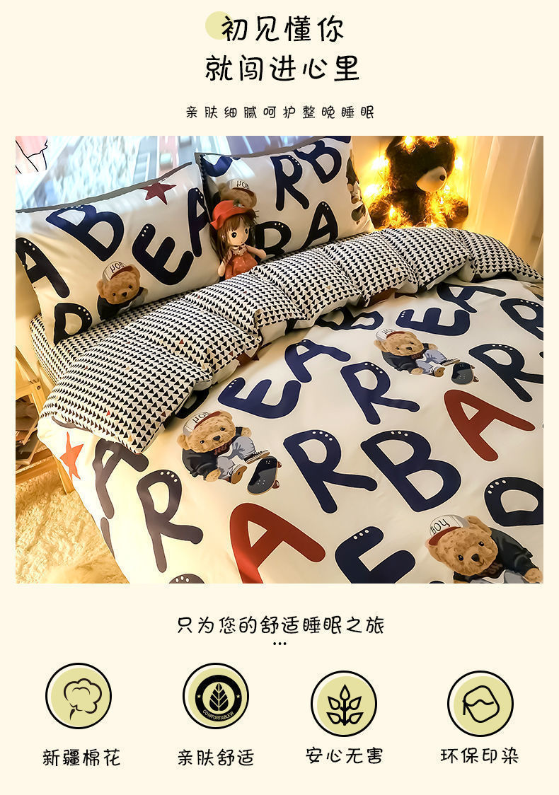 • 알파벳베어 [면 100% 트윌] [업그레이드된 피부친화적이고 섬세하며 밤새도록 잠을 잘 수 있도록]