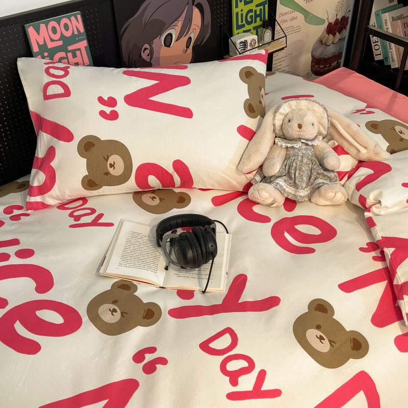 • 알파벳 베어 로즈 레드 [면 100% 트윌] [업그레이드된 피부 친화적이고 섬세하며 밤새 잠을 잘 수 있도록]