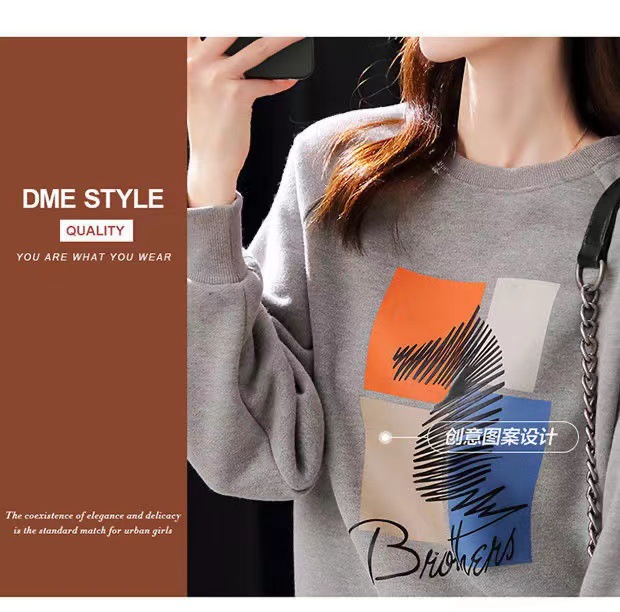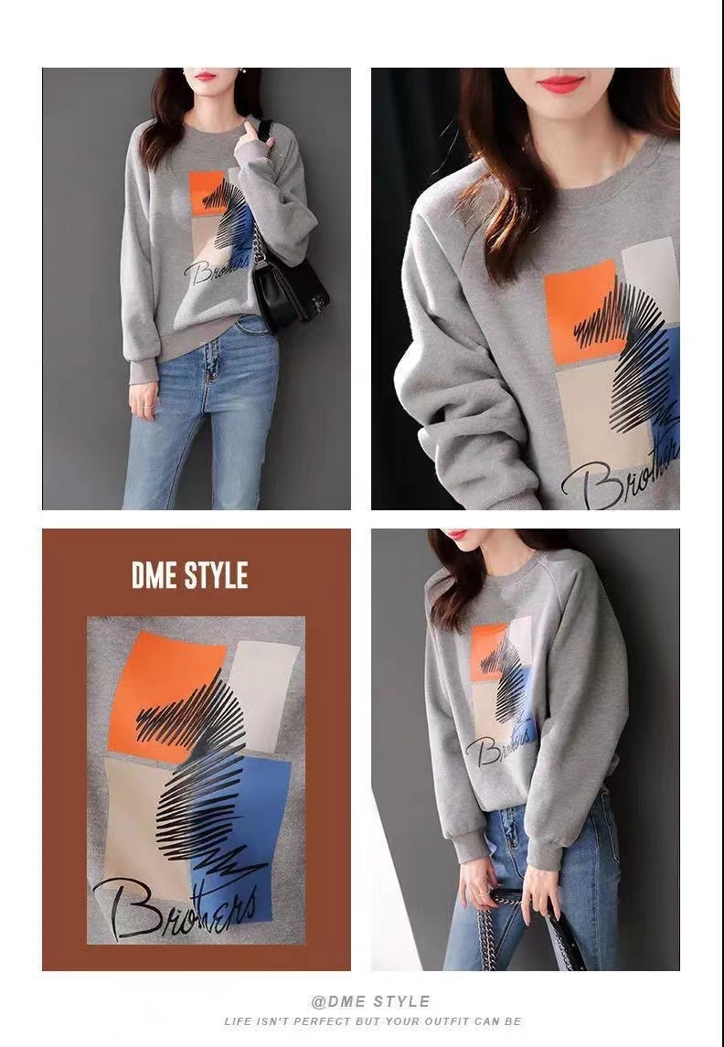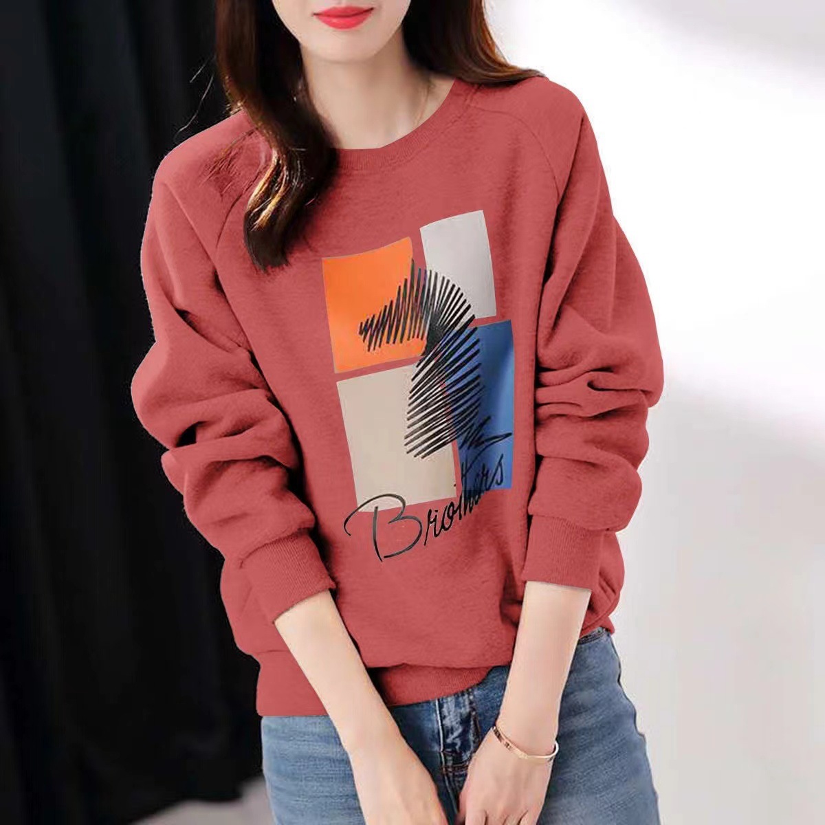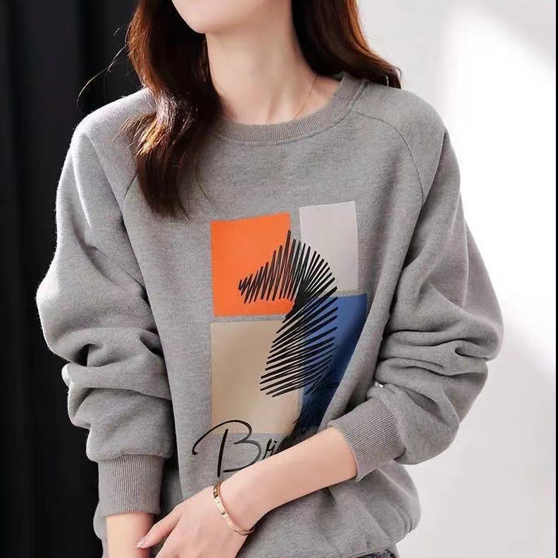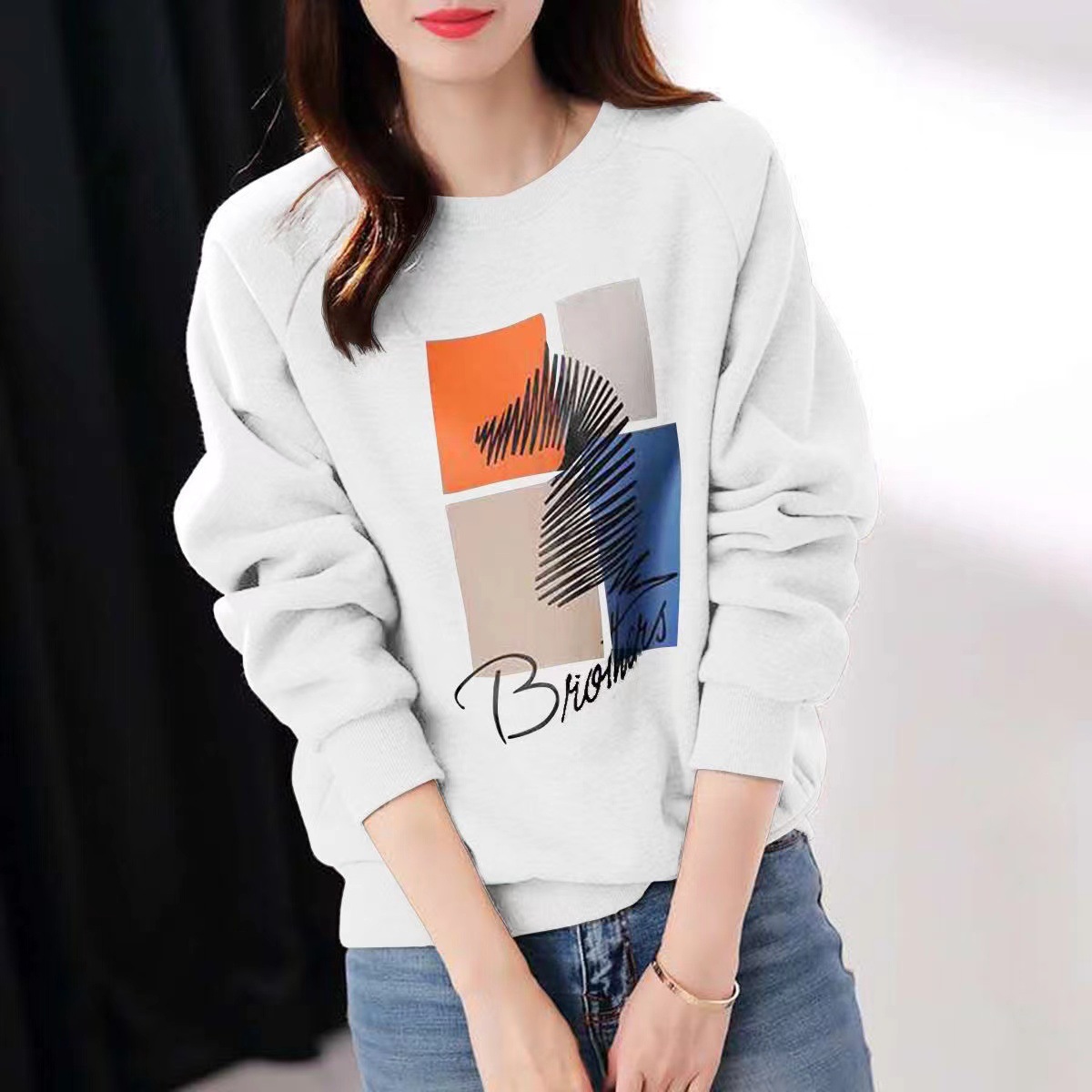 2025 가을 순면 스웨트셔츠 여성용 루즈핏 한국 스타일 다용도 슬림핏 풀오버 긴팔 얇은 재킷 인스 스타일 상의
