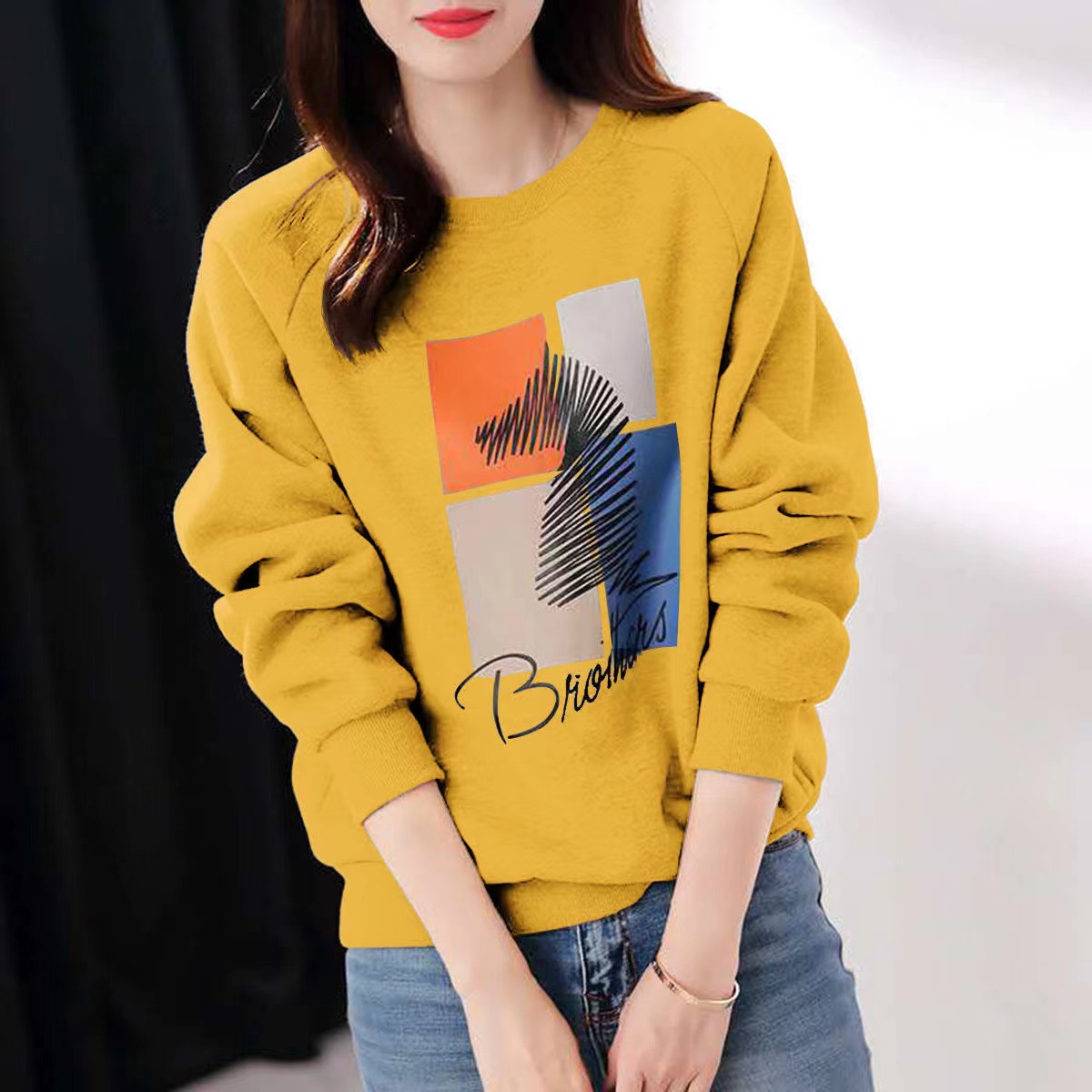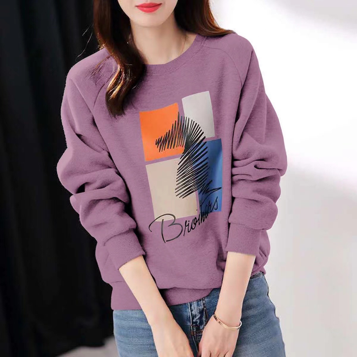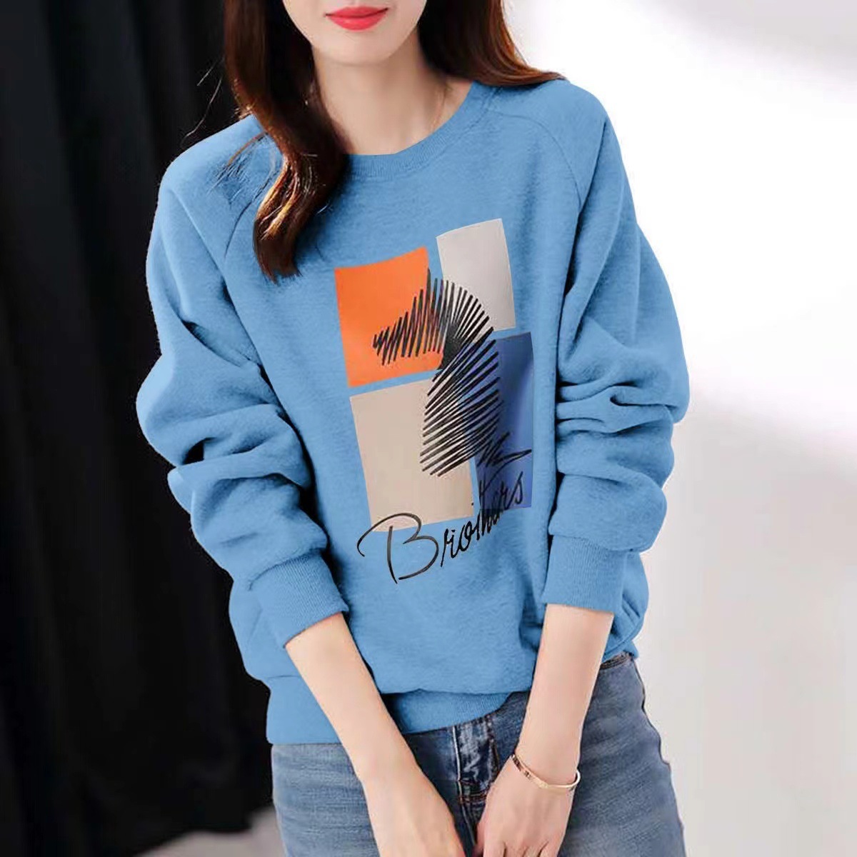 2025 가을 순면 스웨트셔츠 여성용 루즈핏 한국 스타일 다용도 슬림핏 풀오버 긴팔 얇은 재킷 인스 스타일 상의스토어 가기