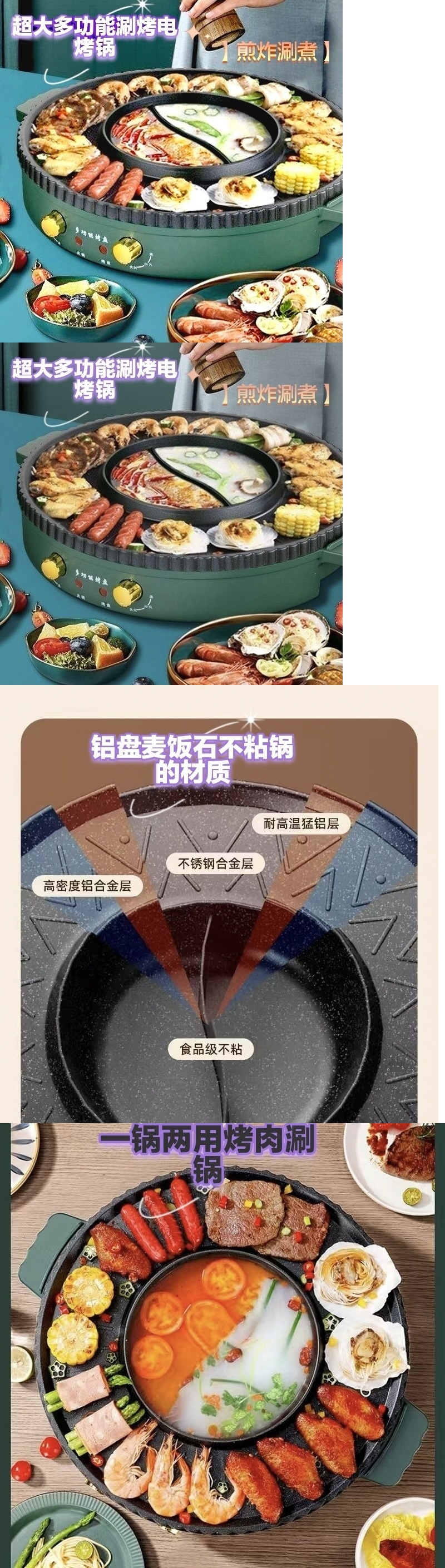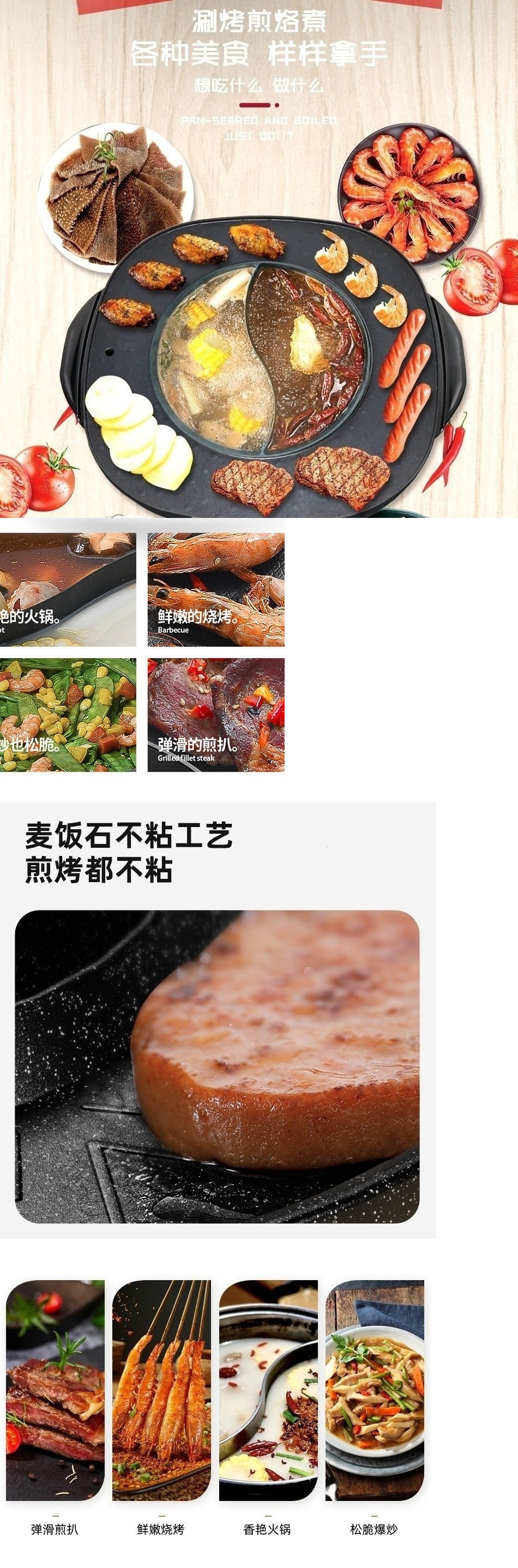 베이킹과 샤부 원피스 냄비 플러그 인 대형 전기 요리 냄비 홈 바베큐 무연 전기 베이킹 팬 베이킹 만다린 오리 샤부 베이킹 포트,스토어 가기