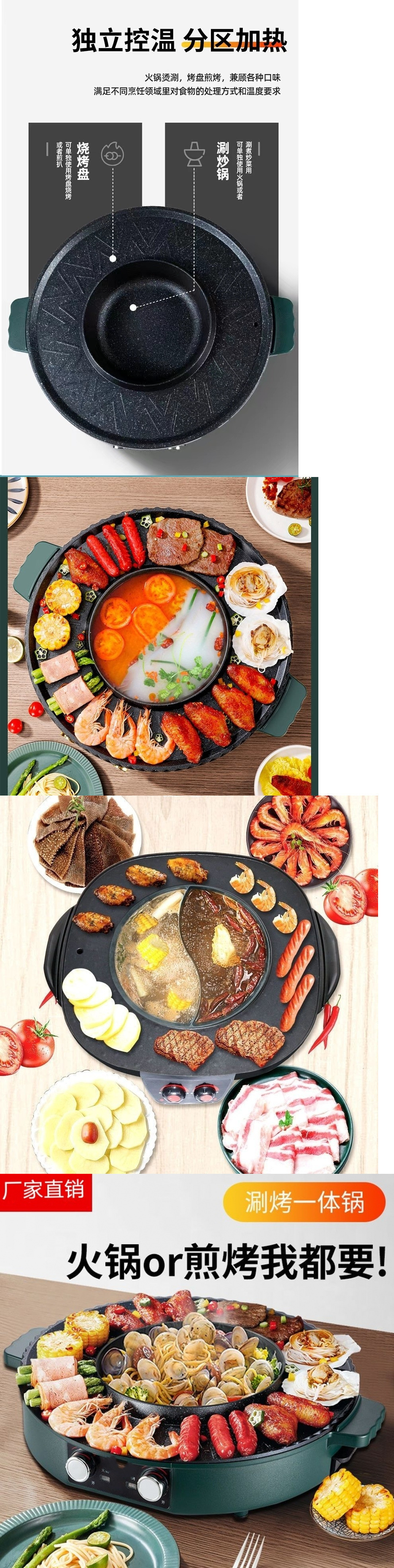 베이킹과 샤부 원피스 냄비 플러그 인 대형 전기 요리 냄비 홈 바베큐 무연 전기 베이킹 팬 베이킹 만다린 오리 샤부 베이킹 포트,