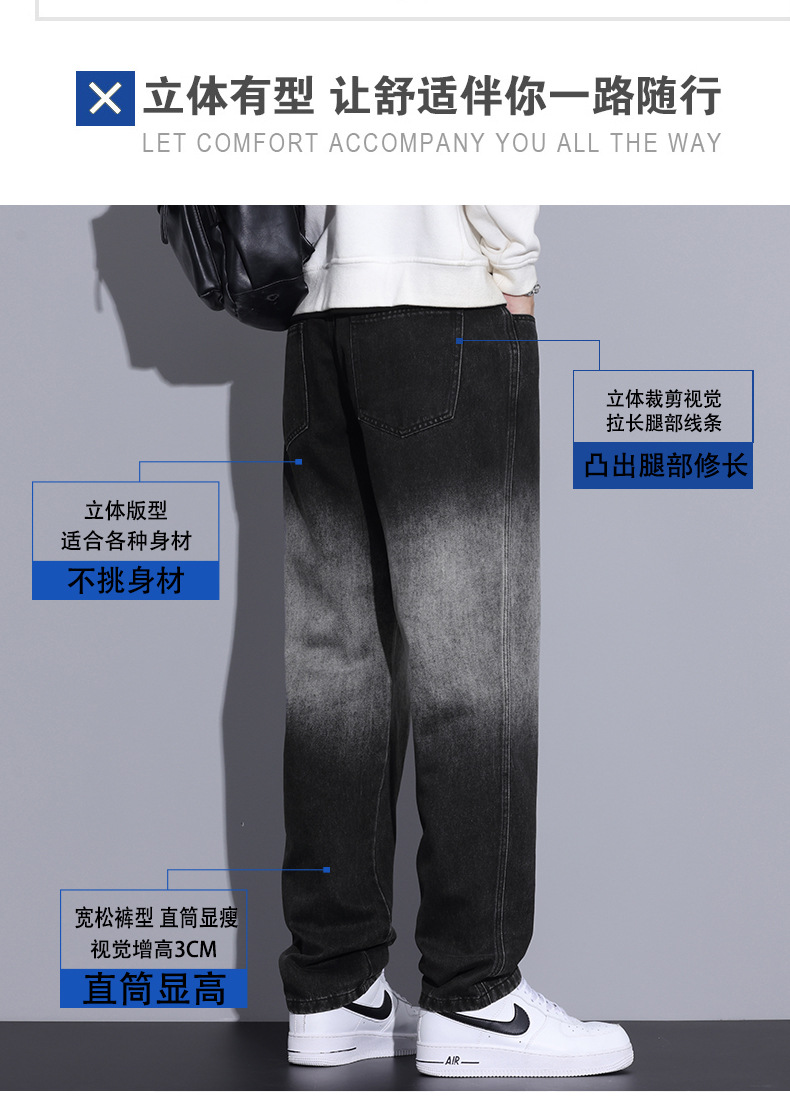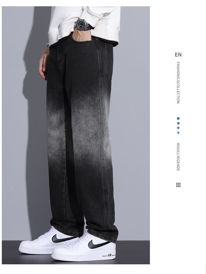 소년 청바지 하이 엔드 센스 스트레이트 튜브 그라디언트 디자인 하이 엔드 간단한 간편한 성격 잘 생긴 남성용 긴 바지스토어 가기