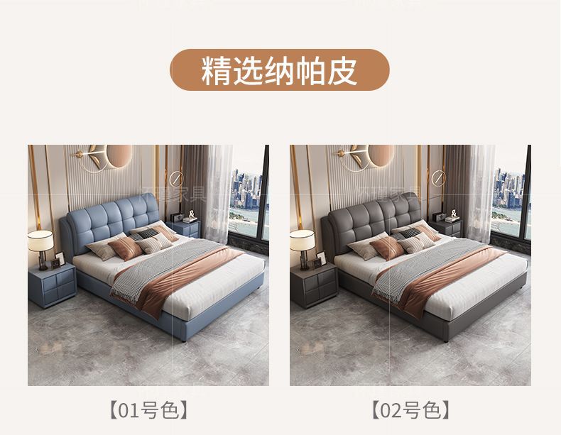 가죽 침대 현대 간단한 가벼운 럭셔리 2023 새로운 웨딩 베드 마스터 침실 더블 스토리지 이탈리아 소프트 백 솔리드 우드 가죽 침대스토어 가기