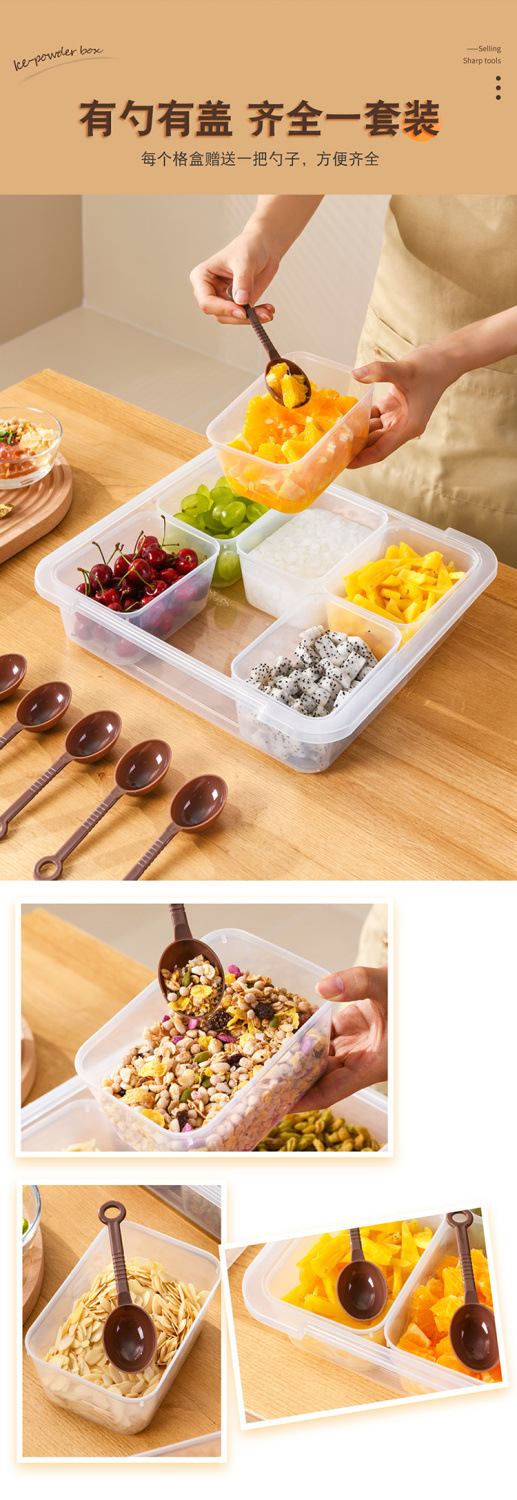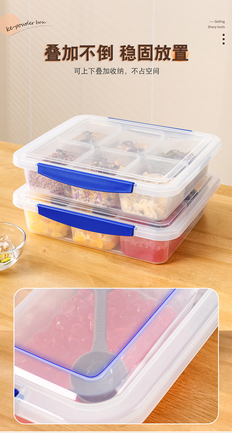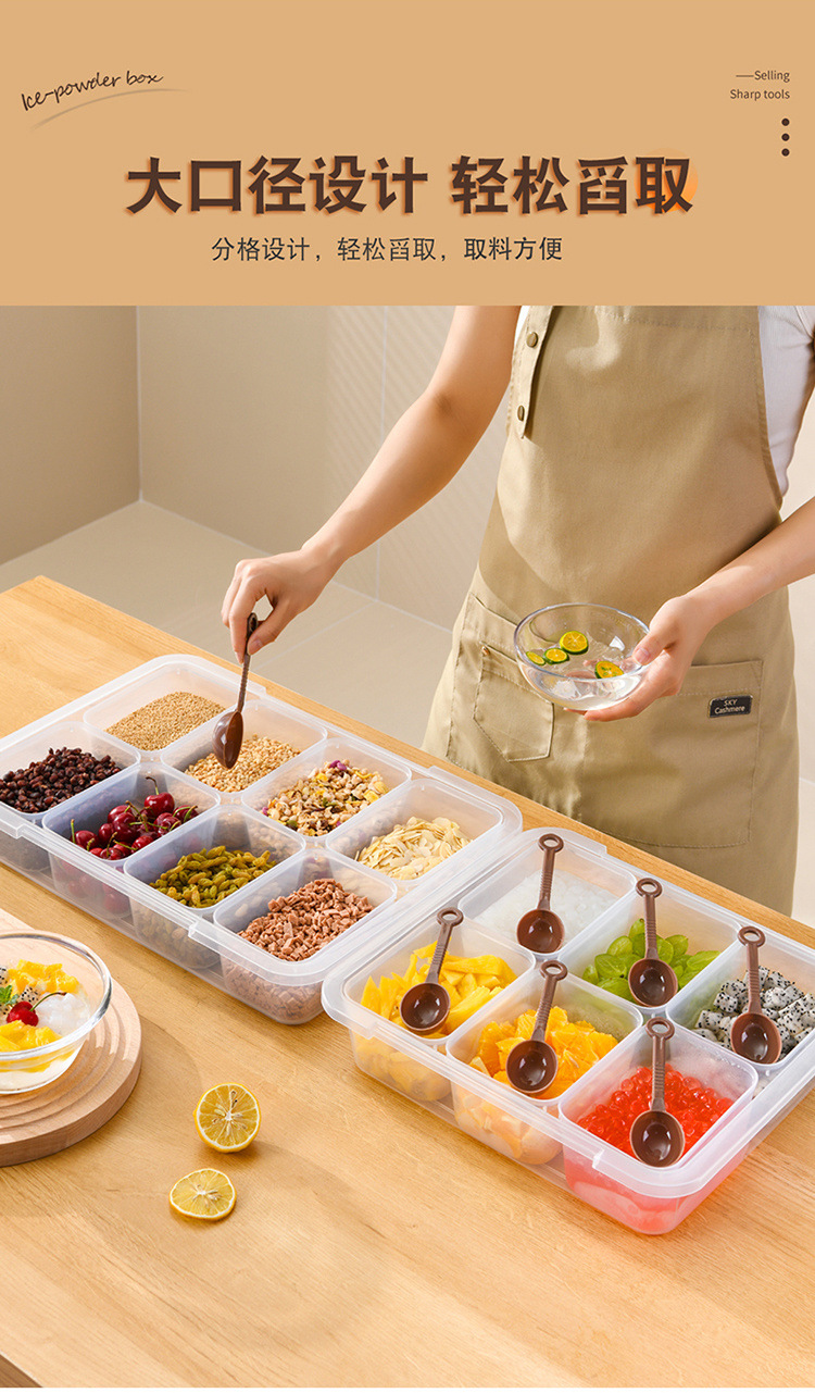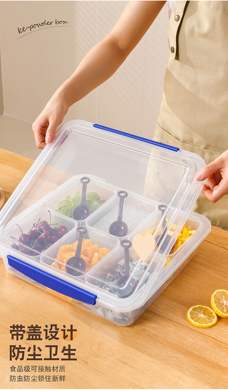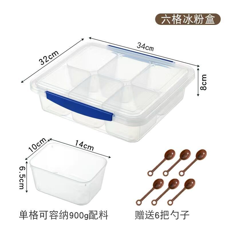 • 뚜껑이 있는 6칸 PP 업그레이드 잠금 얼음 가루 상자 + 스푼 6개