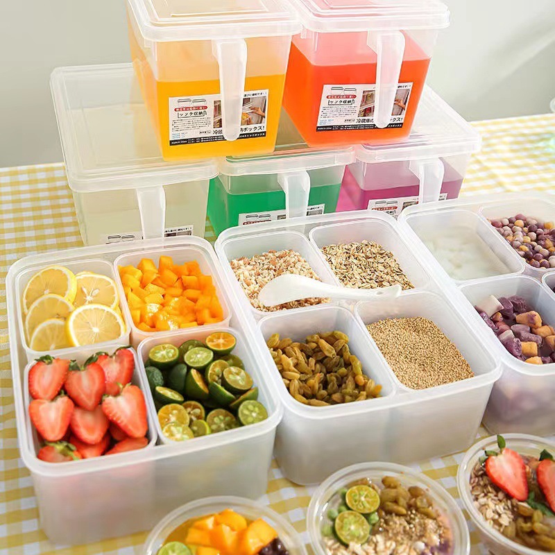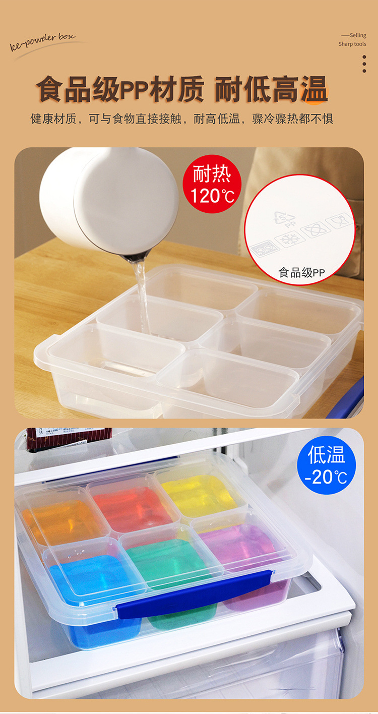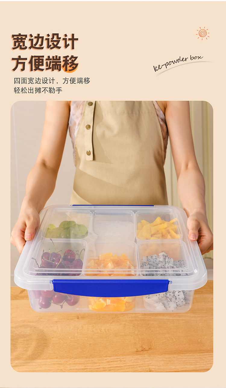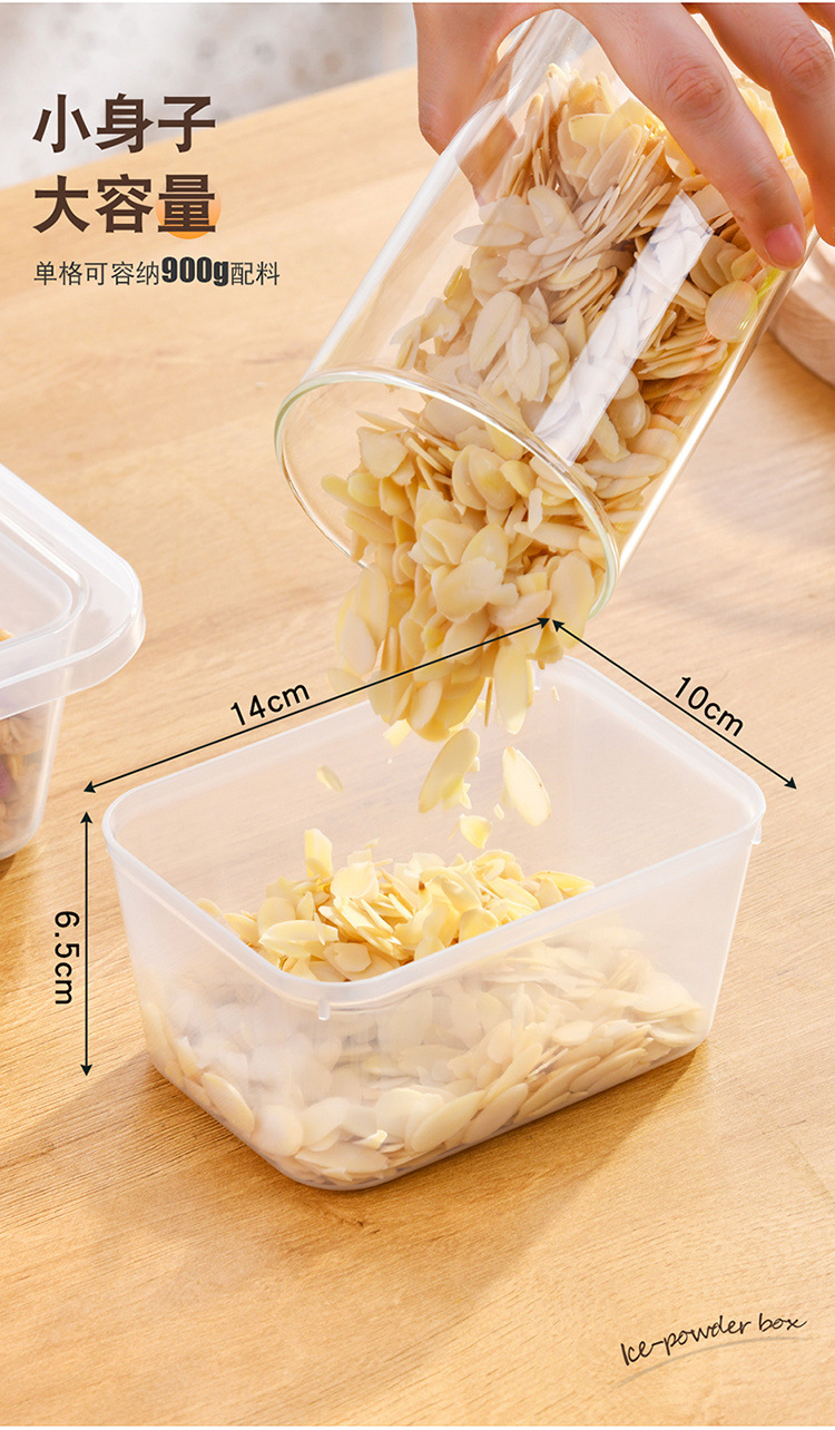 • 뚜껑이 있는 6칸 PP 업그레이드 잠금 얼음 가루 상자 + 스푼 6개