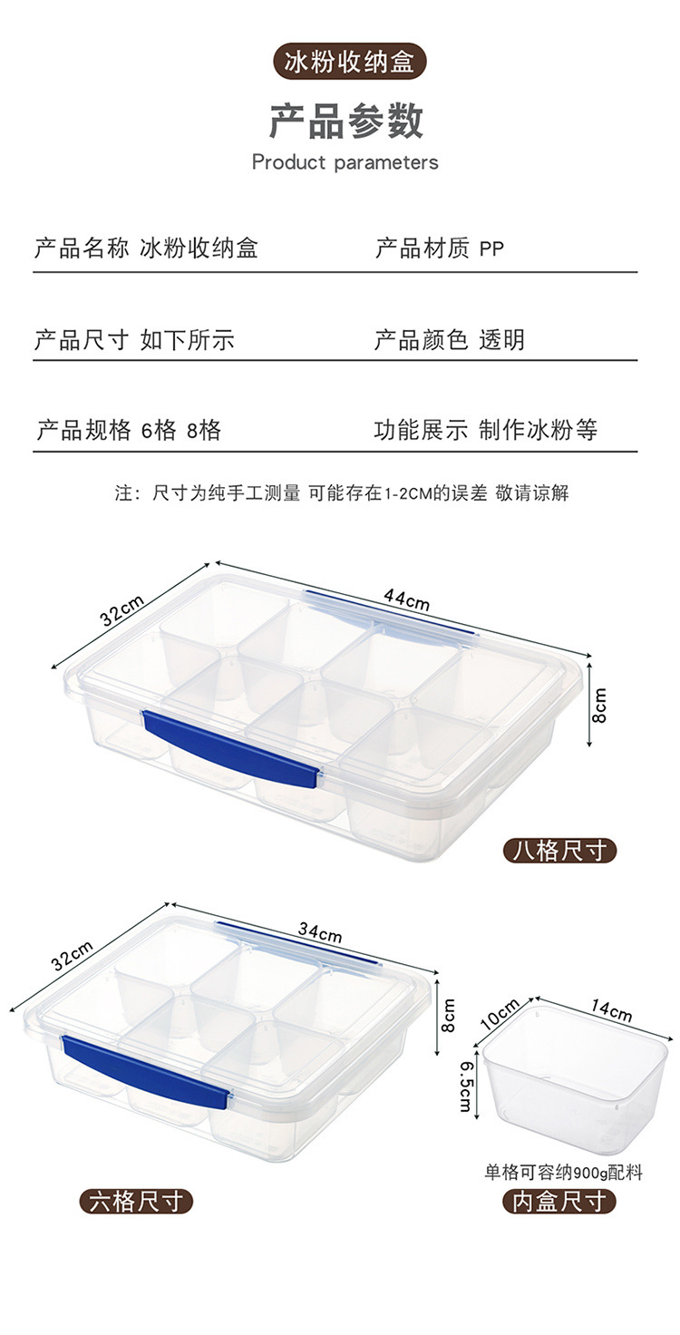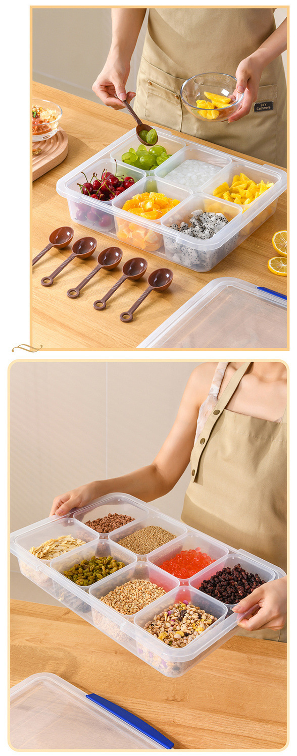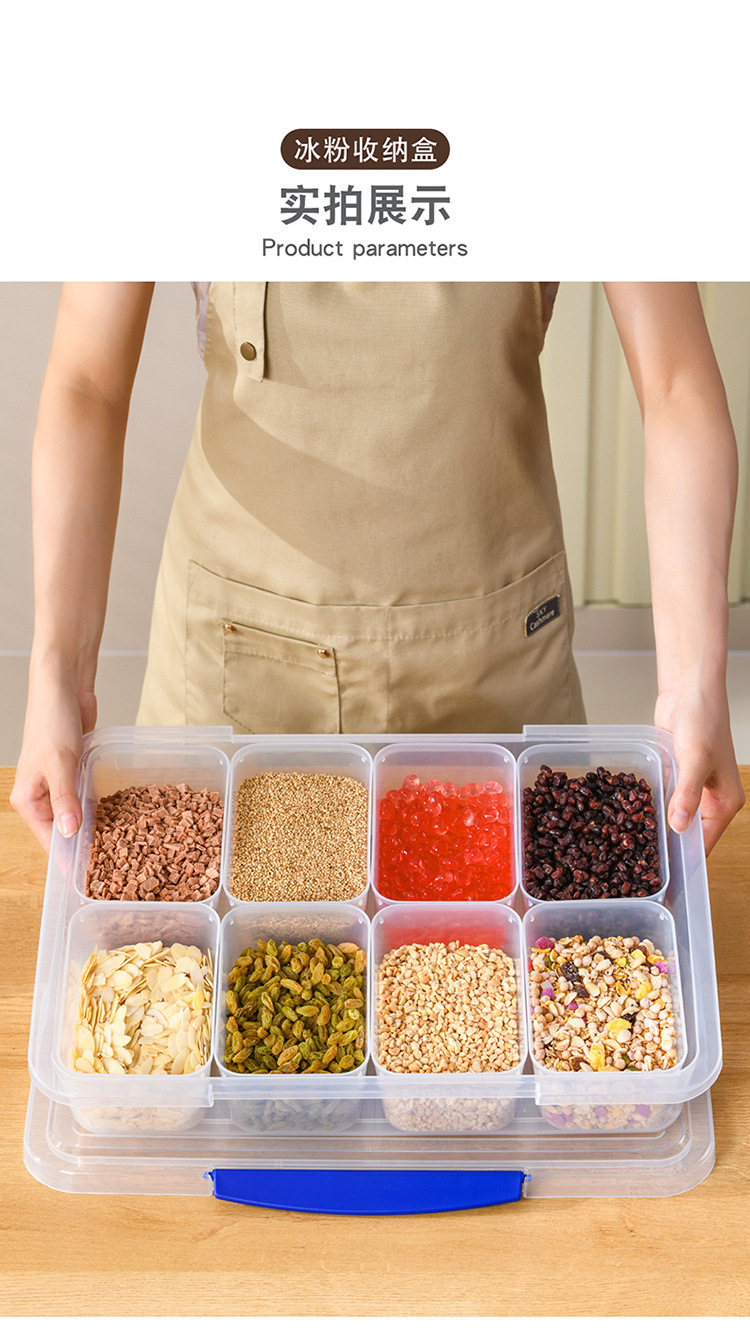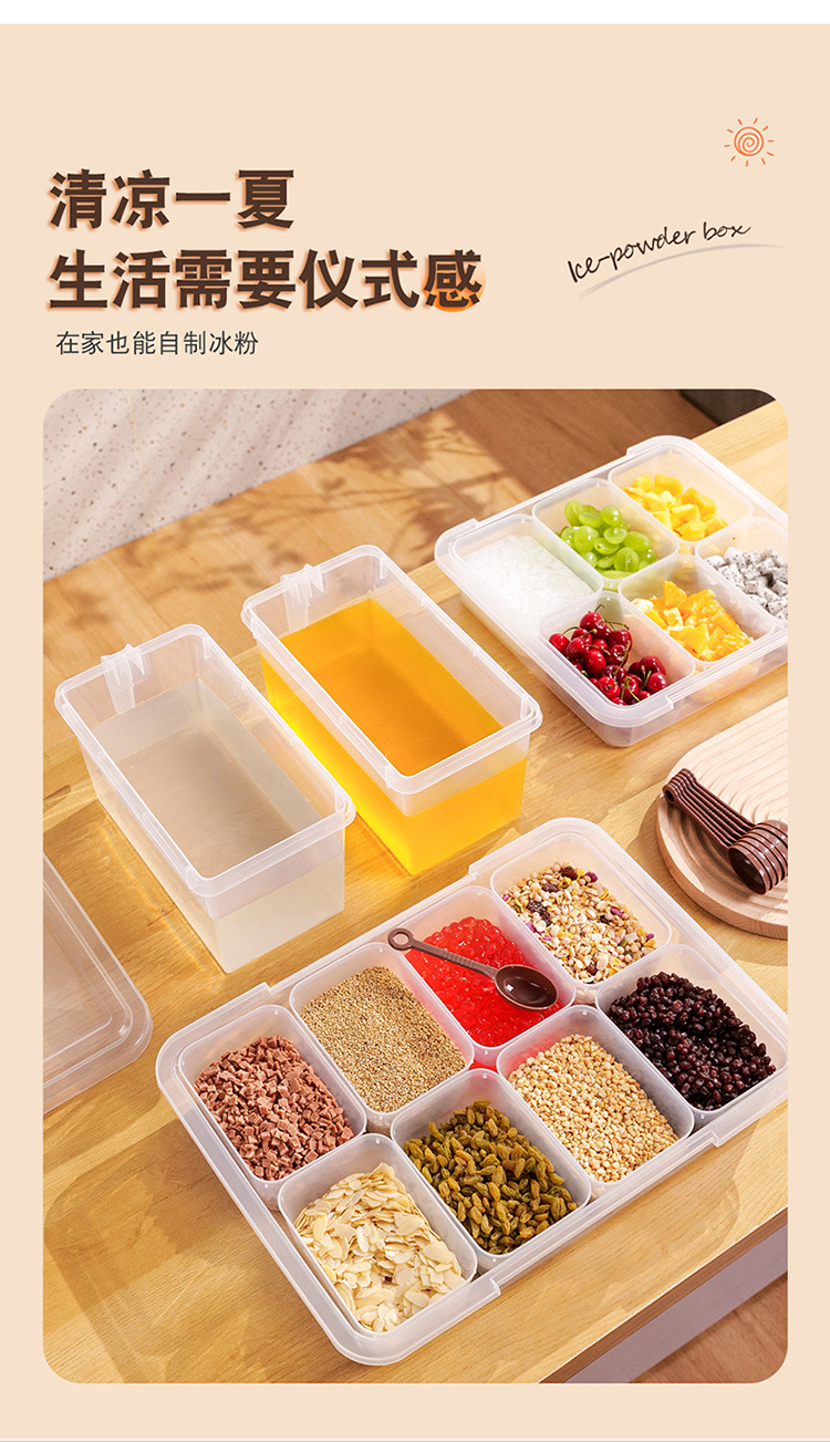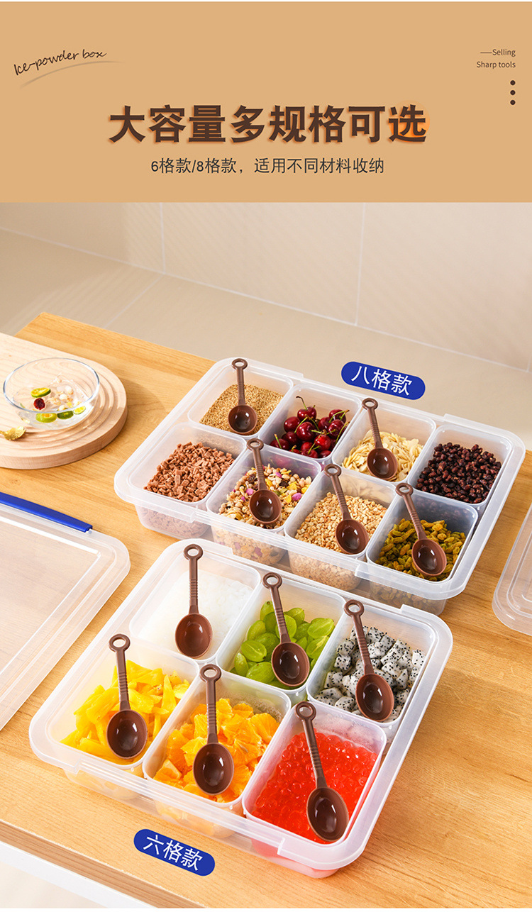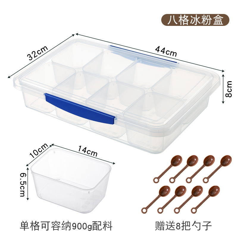• 뚜껑이 있는 8칸 PP 업그레이드 잠금 얼음 가루 상자 + 스푼 8개