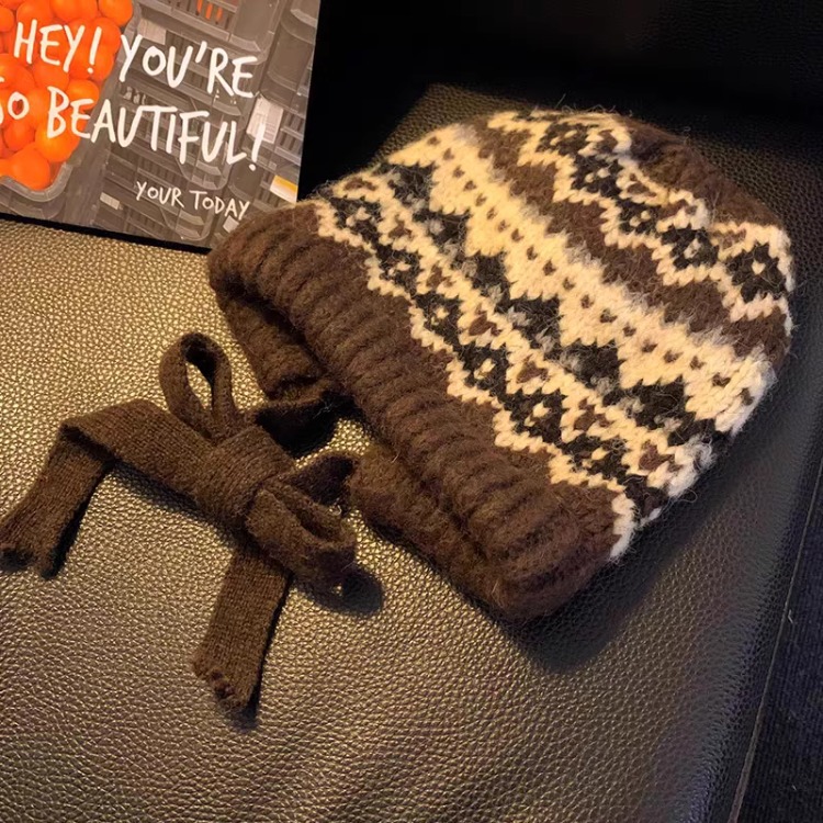 페어 아일랜드 스타일 니트 울 모자 여성의 가을과 겨울 귀 보호 발라 클라 바 모자 따뜻한 패션 모자스토어 가기