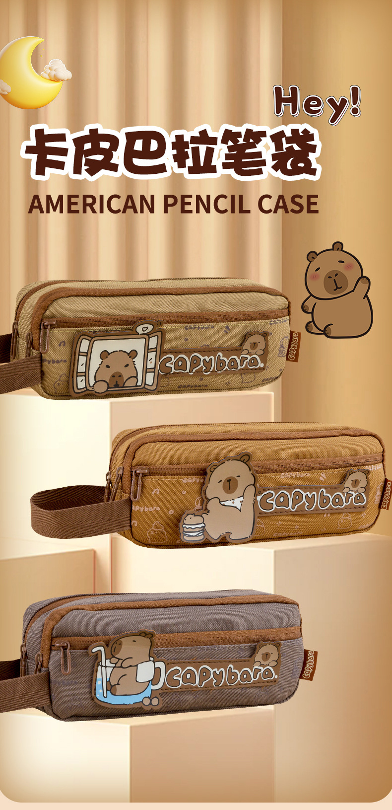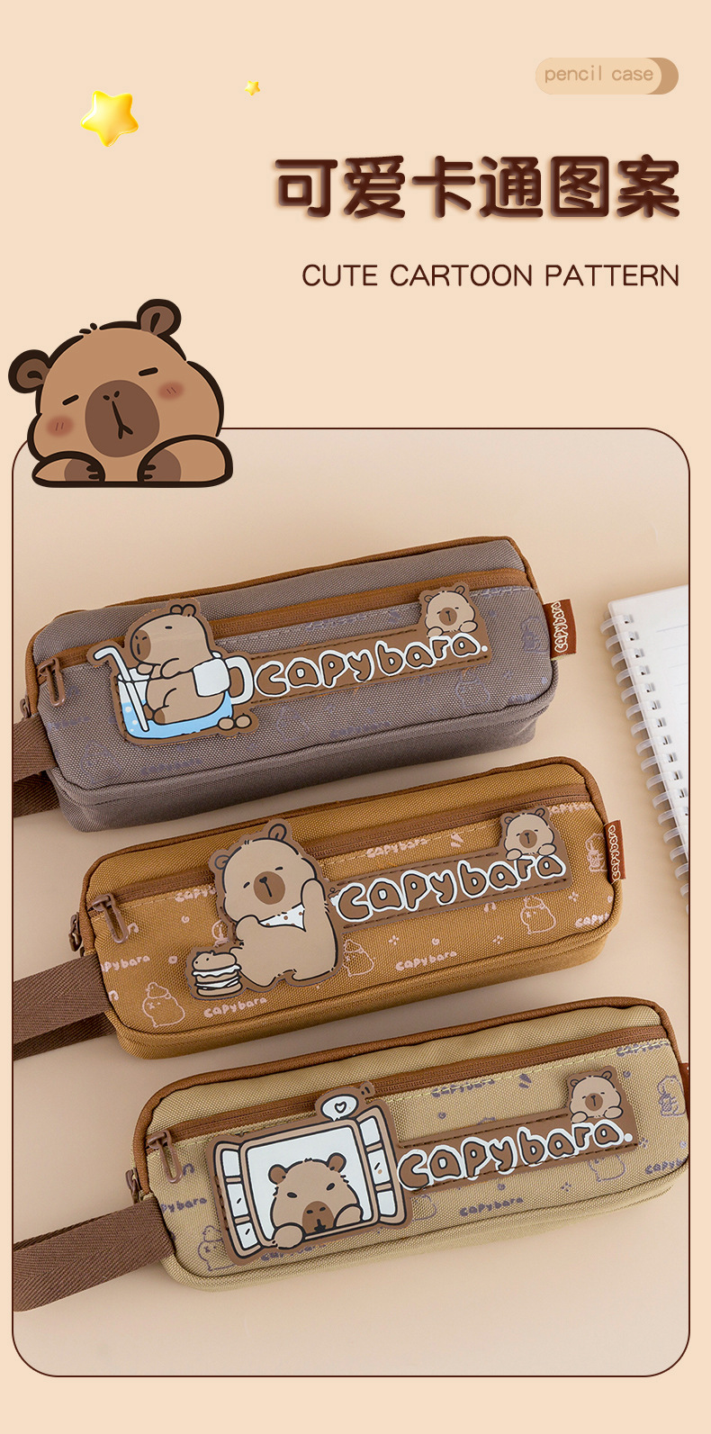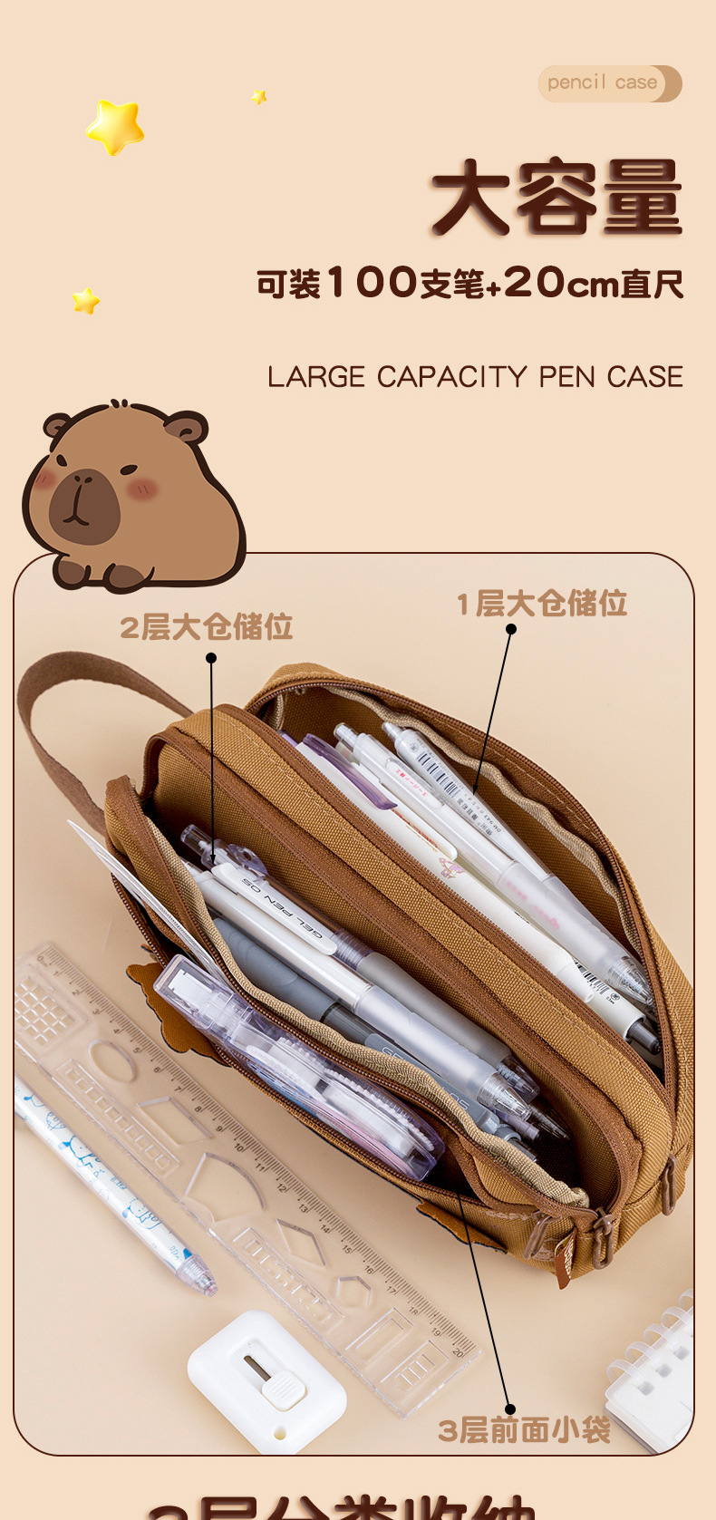 카피 발라 다층 대용량 연필 가방 소년과 소녀 귀여운 카피 바라 문구 가방 고등학교 중학교 초등학교 연필 케이스스토어 가기