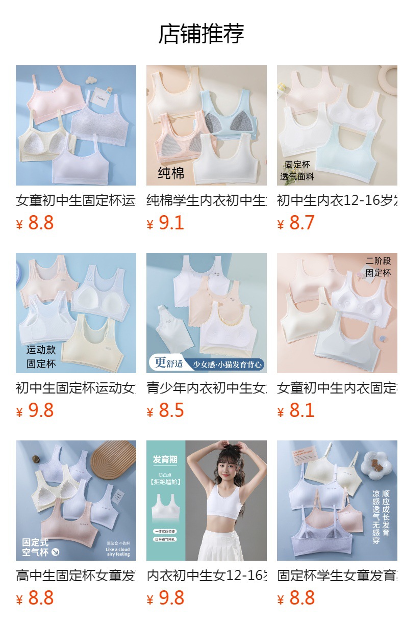 여아 속옷 12-16 세 중학생 여학생 발달여아 브래지어 고정컵 학생 조끼 고교생스토어 가기