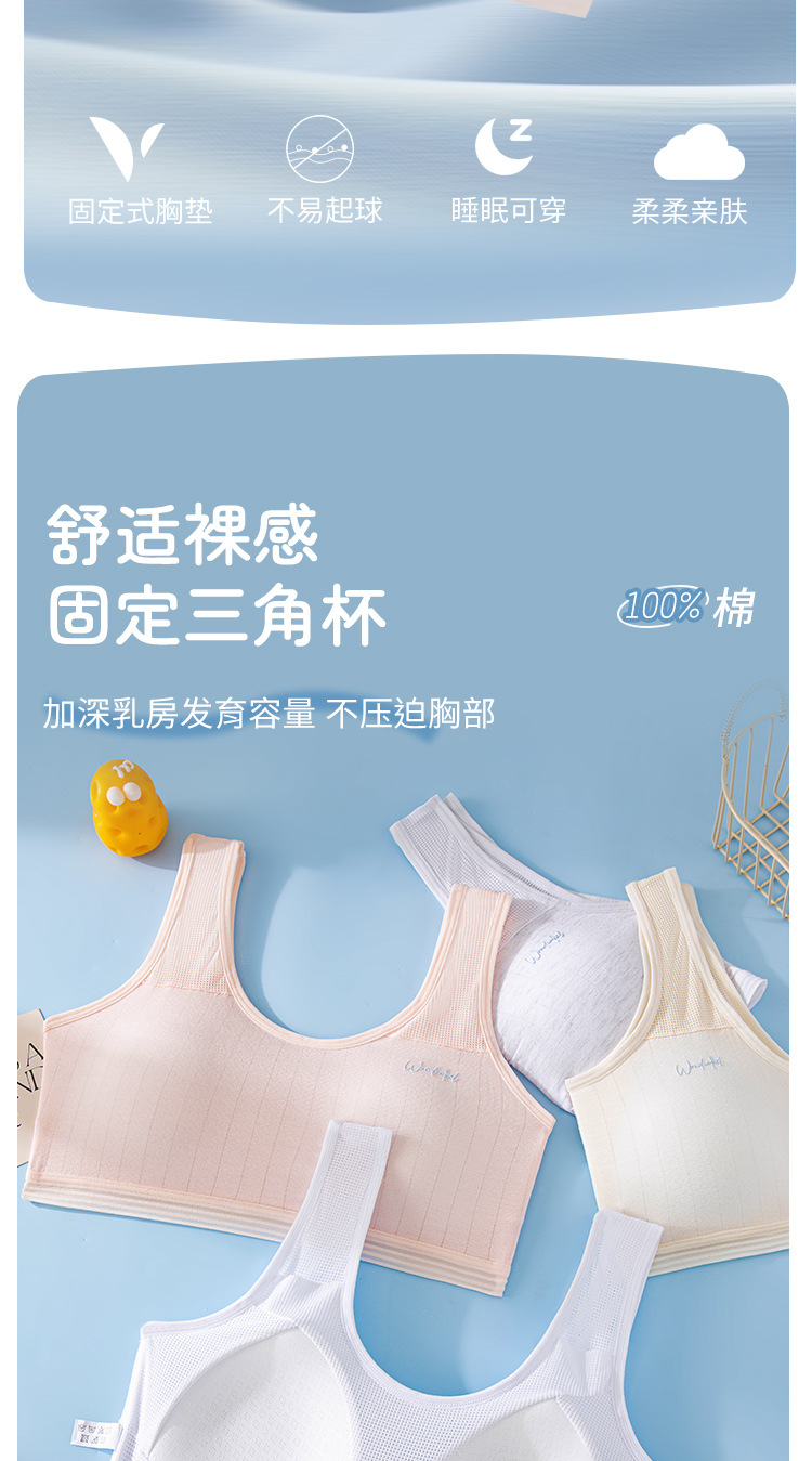 여아 속옷 12-16 세 중학생 여학생 발달여아 브래지어 고정컵 학생 조끼 고교생