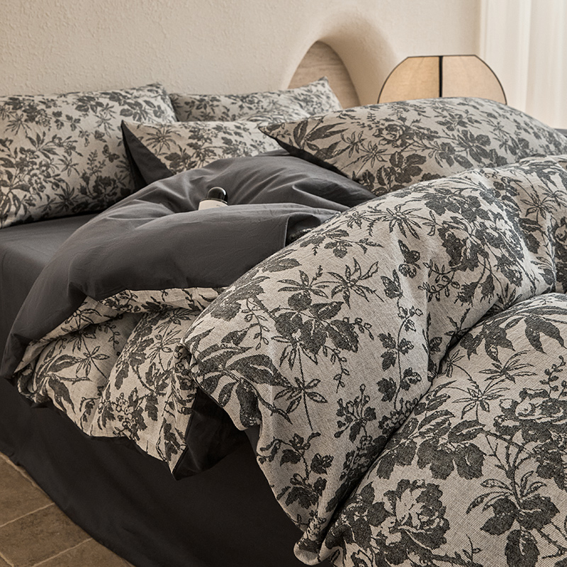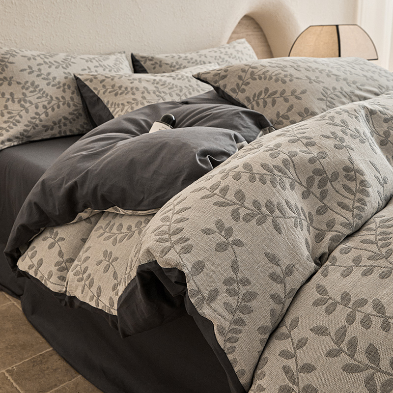 • Fusheng-다크 그레이 [면 3겹 거즈 자카드 원단, 피부 친화적, 알몸 수면]