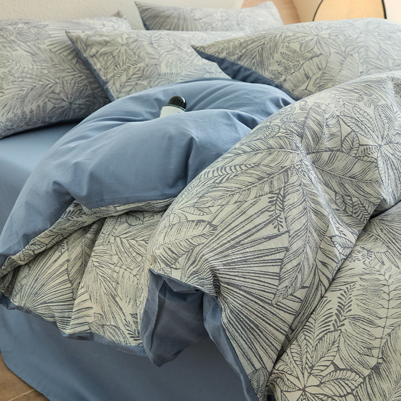 간단한 코튼 자카드 침대 4 피스 세트 가정용 면 3 층 원사 침대 시트 퀼트 커버 침구 침구