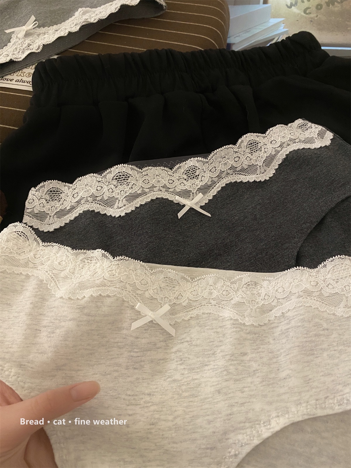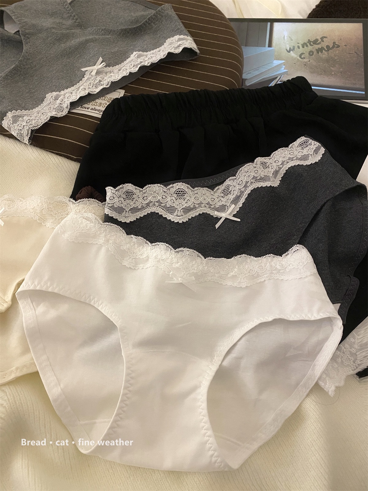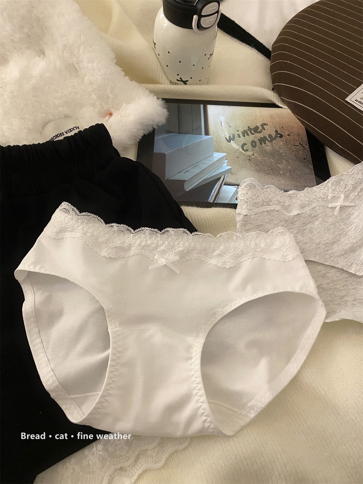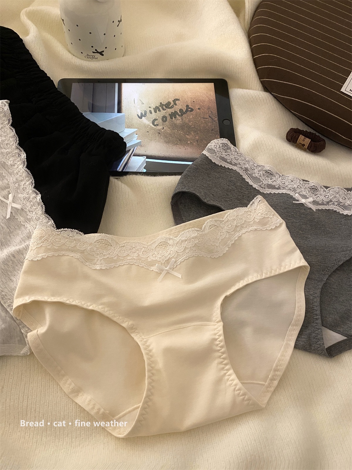 Mori Wafer French 10A 항균 양조 크로트 순면 속옷 여성의 중간 허리 비 마킹 피부 친화적 인 레이스 퓨어 코튼 속옷스토어 가기