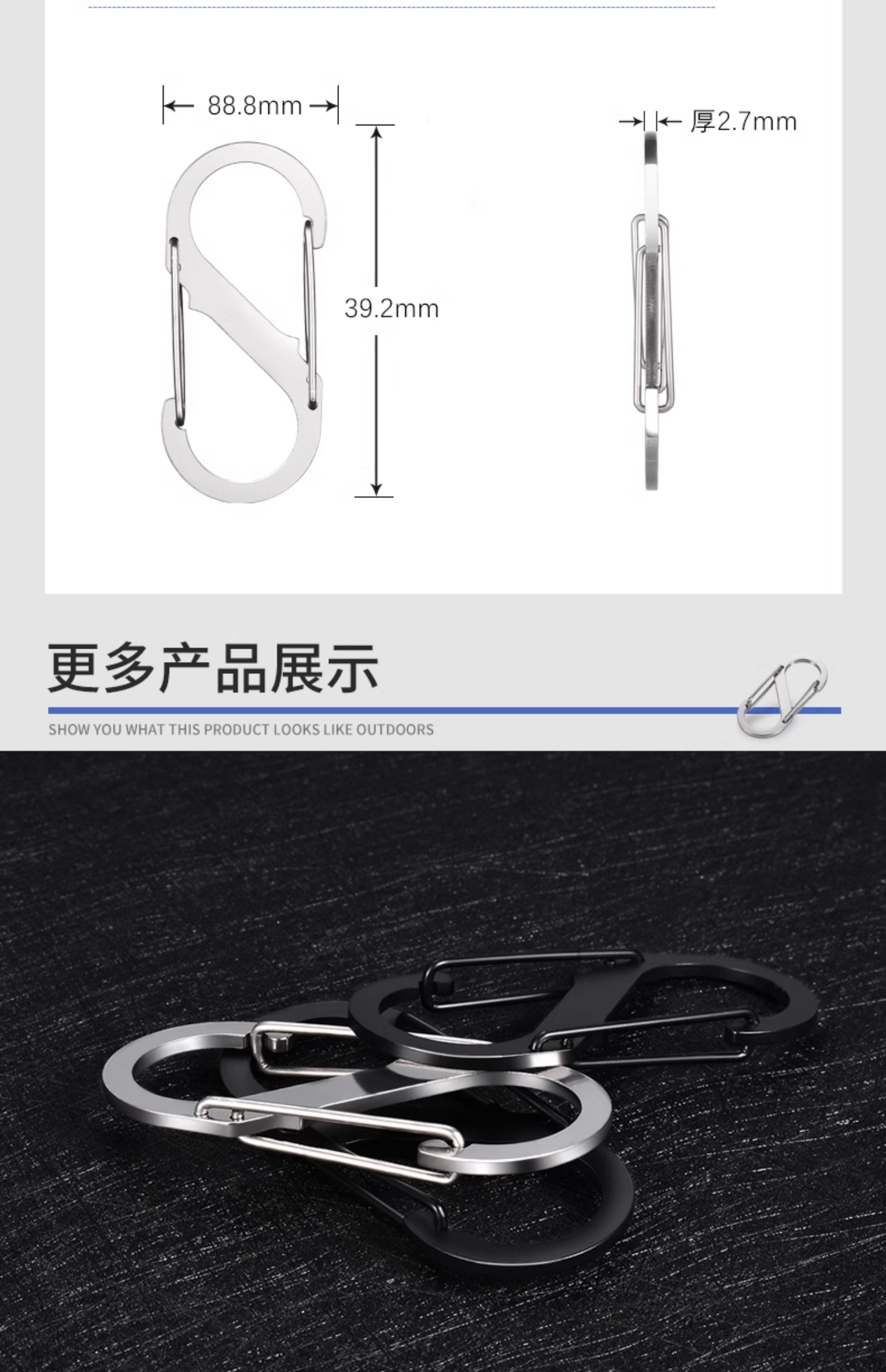 스테인레스 스틸 등산 버클 S 자형 빠른 교수형 다기능 후크 휴대용 주전자 배낭 교수형 버클 야외 장비 키 체인