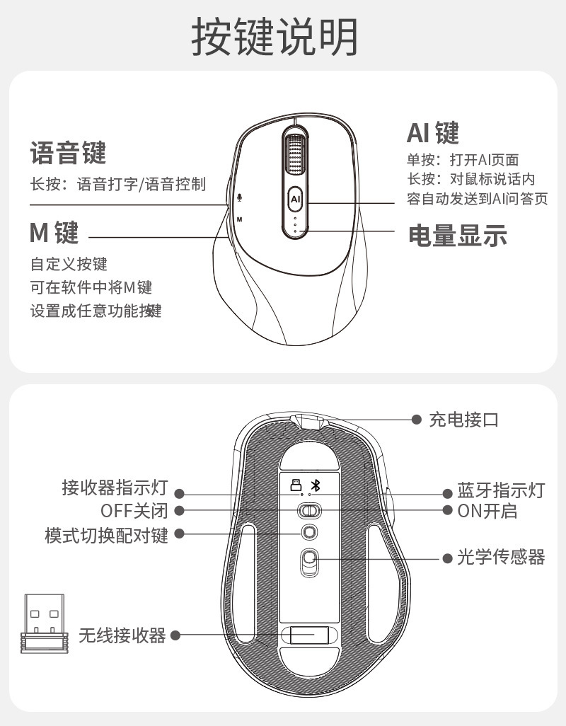 한국 현대 지능형 AI 마우스 V13 음성 타이핑 번역 AI 지능형 조수 쓰기 그림 양식 ppt
