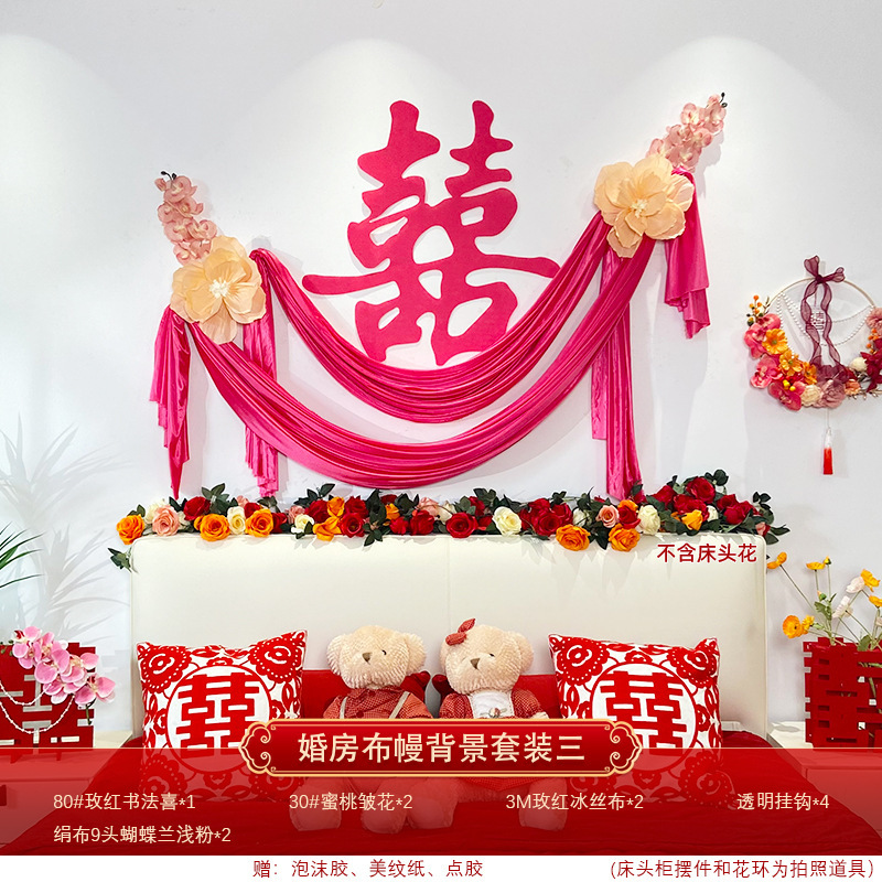 남자와 여자의 새 집 침실 배경 벽 웨딩 룸 레이아웃 세트 거실 꽃 장식 웨딩 원피스
