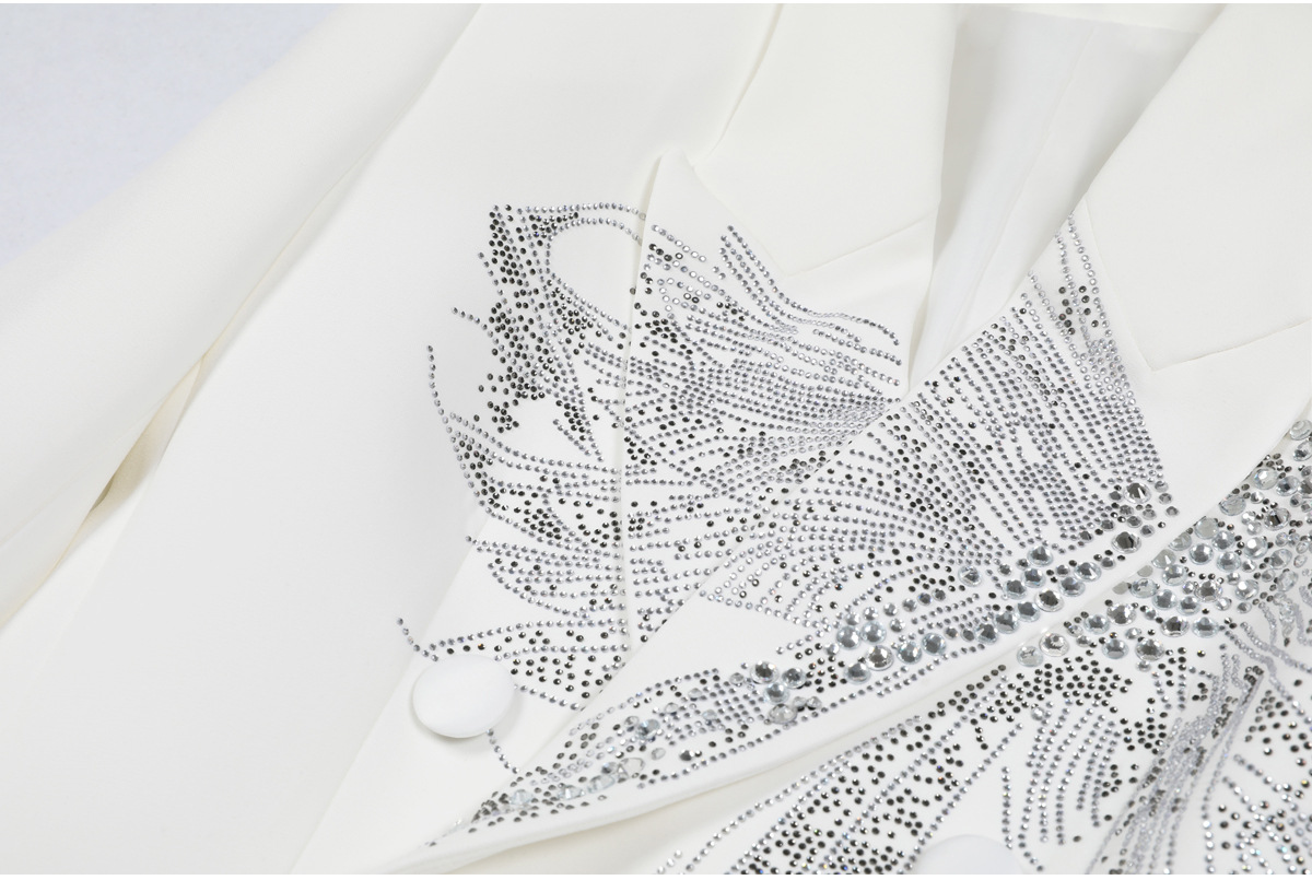 24278 고품질 재고 상품 봄 가을 신상 고급스러운 다이아몬드 장식 슬림핏 여성용 고급 블레이저 재킷스토어 가기