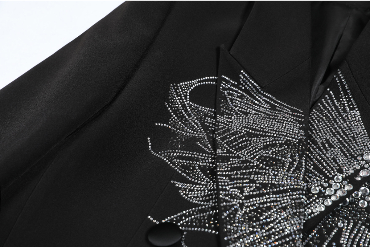 24278 고품질 재고 상품 봄 가을 신상 고급스러운 다이아몬드 장식 슬림핏 여성용 고급 블레이저 재킷