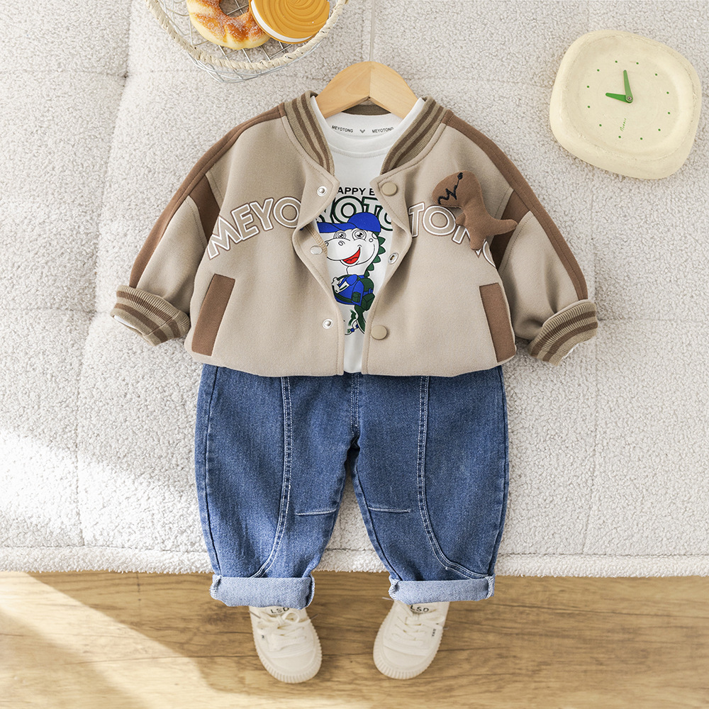 어린이 봄 세트 2025 새로운 스타일 소년 아기 봄과 가을 만화 공룡 야구 세트 재킷 3 종 세트스토어 가기