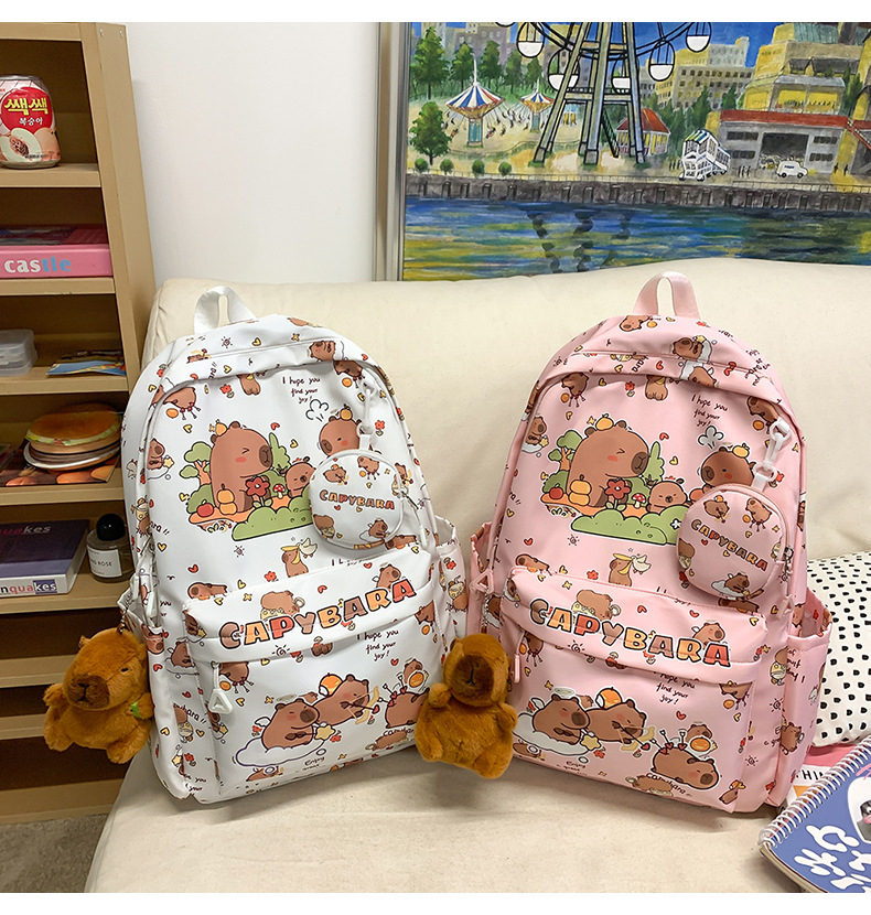 유행 인쇄 배낭 중학교 고등학교 고등학교 초등학교 학생들 귀여운 배낭 대용량 만화 감압 학생 학교 가방