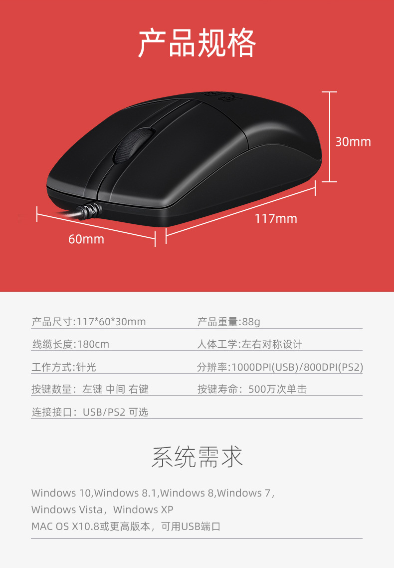 520 유선 마우스 USB 비즈니스 오피스 PS/2 원형 홀 데스크탑 컴퓨터 광학 마우스 제조업체 도매