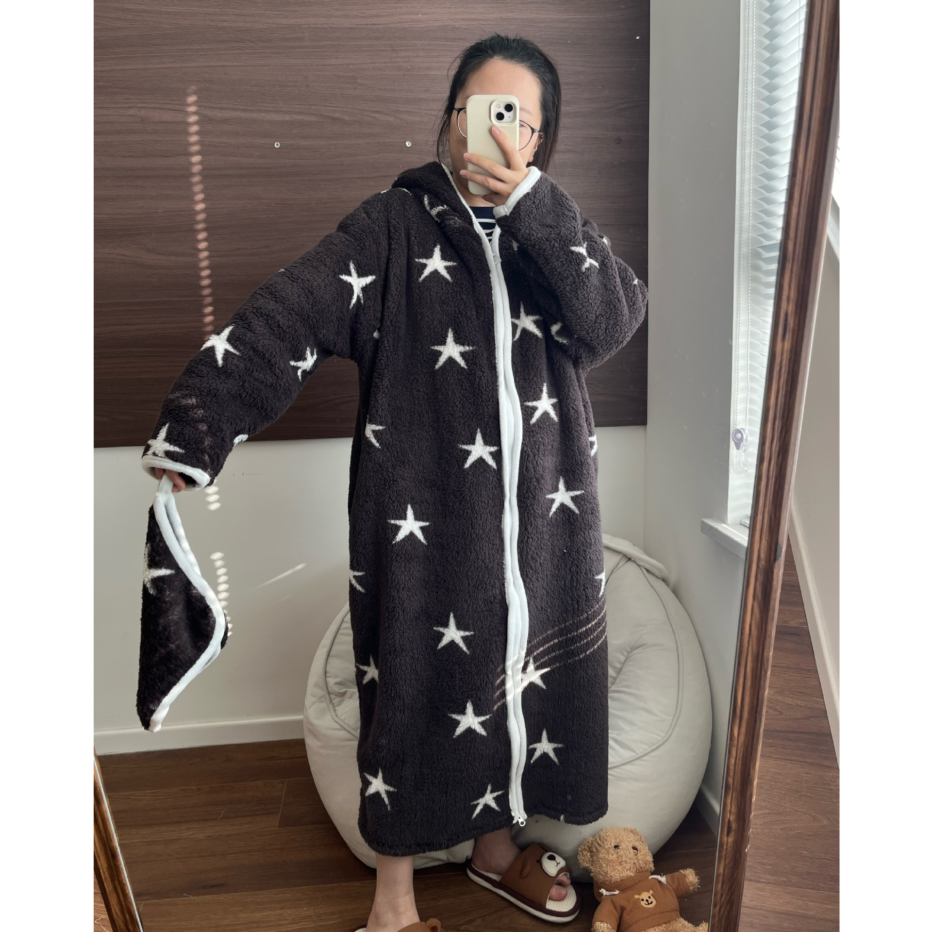 홍난【실사】걷기에도 편한 빅사이즈 레오파드 무늬 잠옷 두꺼운 보온 홈웨어 후드 지퍼 잠옷