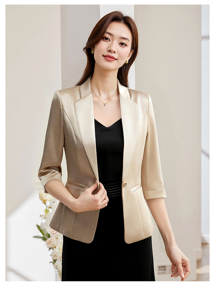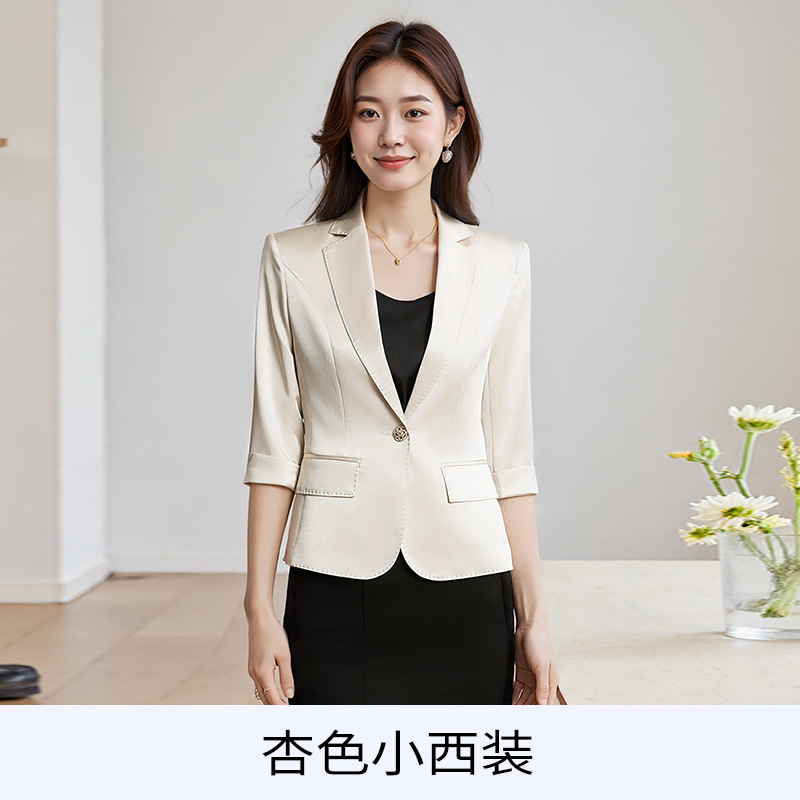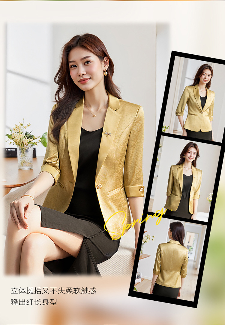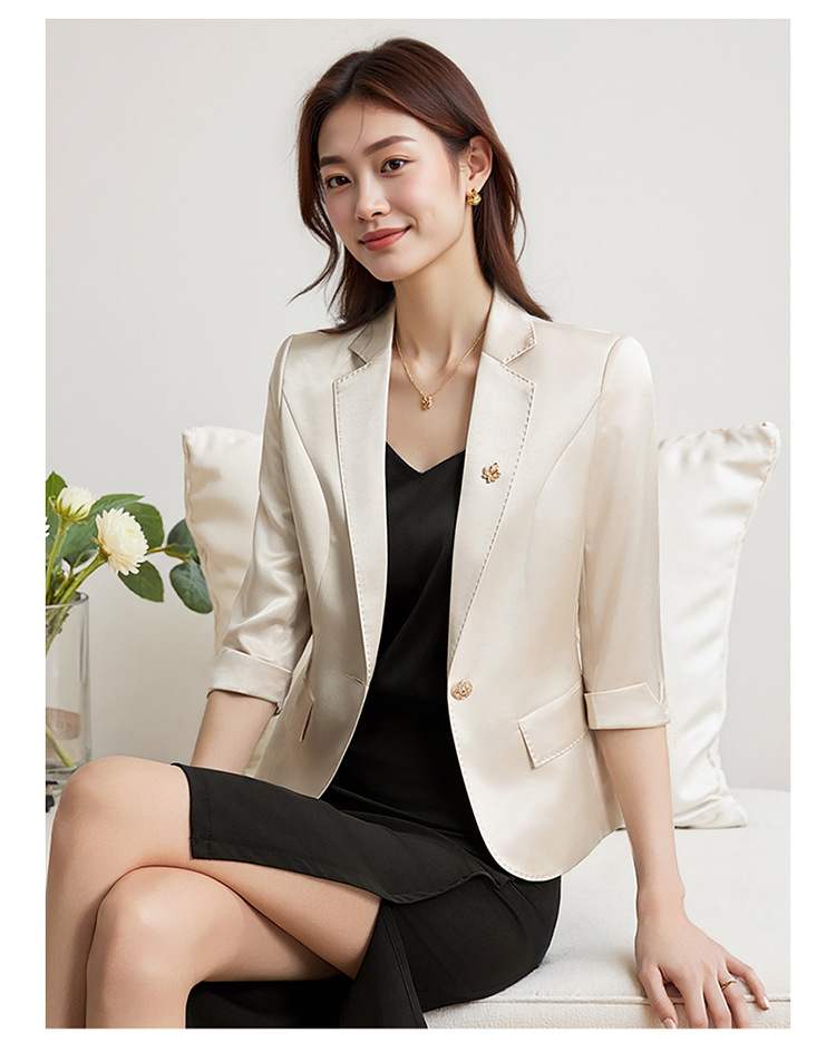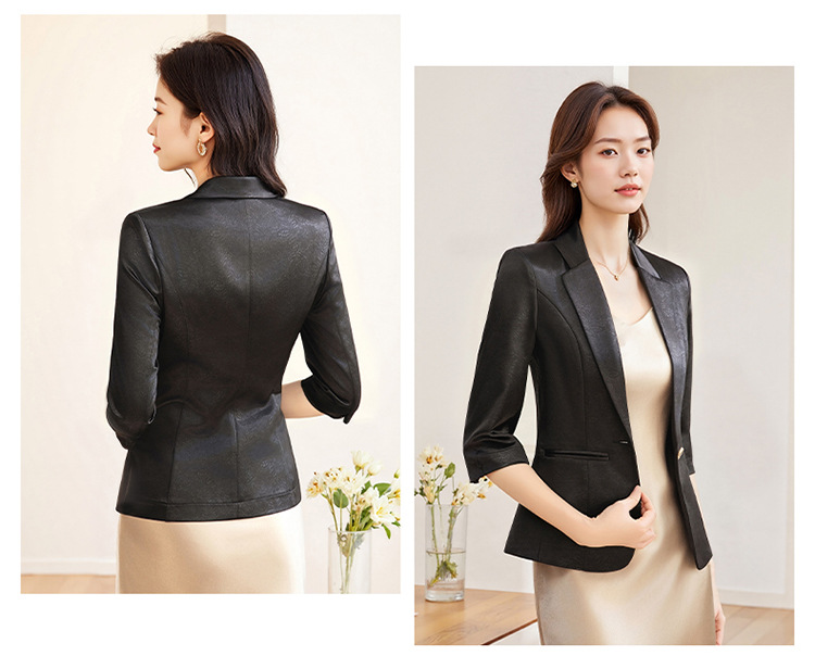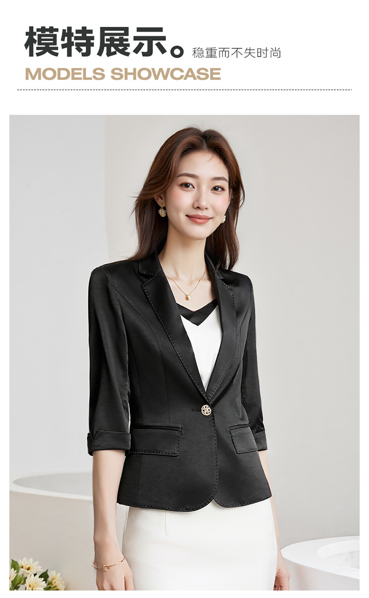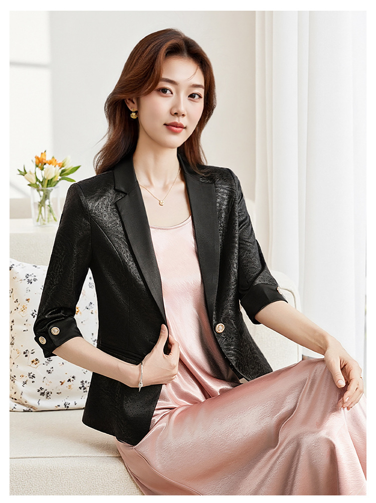 블랙 하이 엔드 Acetic Acid Satin 작은 세트 자켓 여성의 처진 여름 얇은 2025 새로운 도착 7 점 슬리브 탑스토어 가기