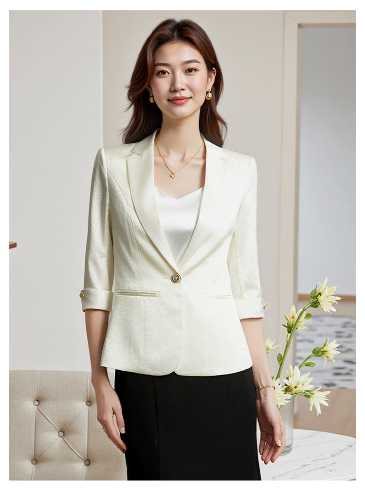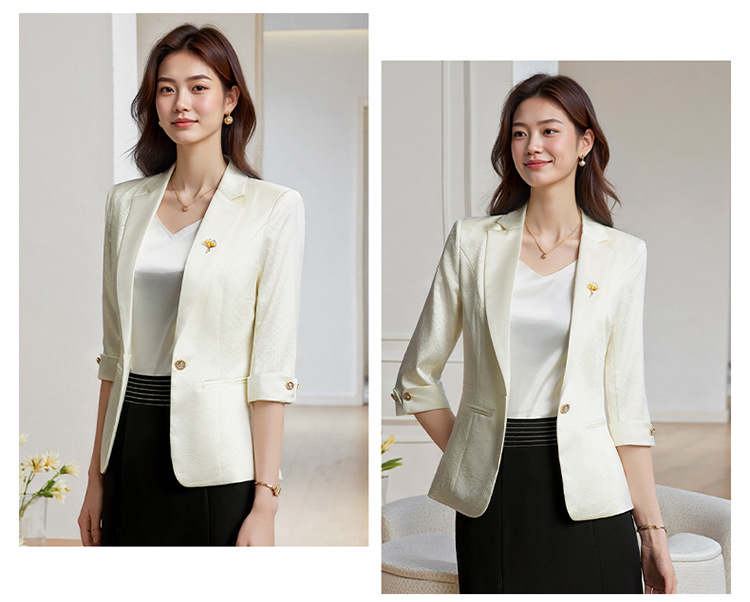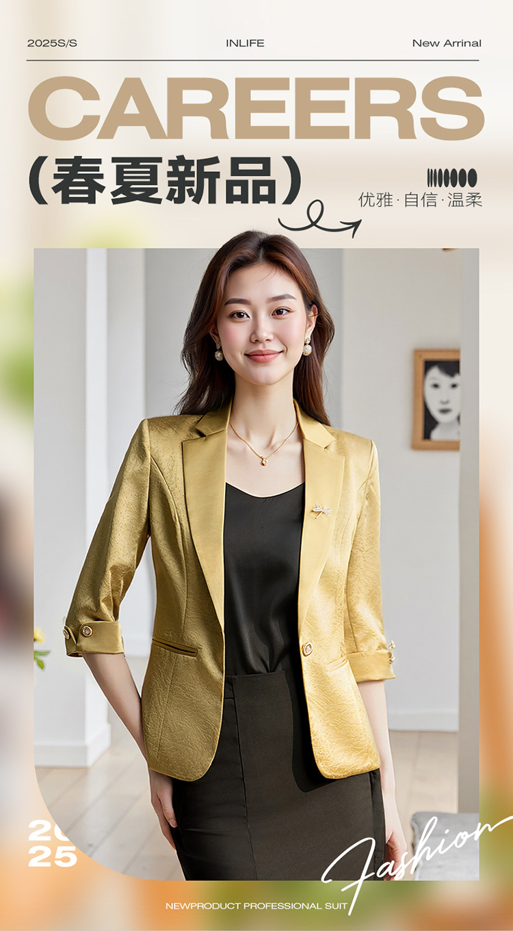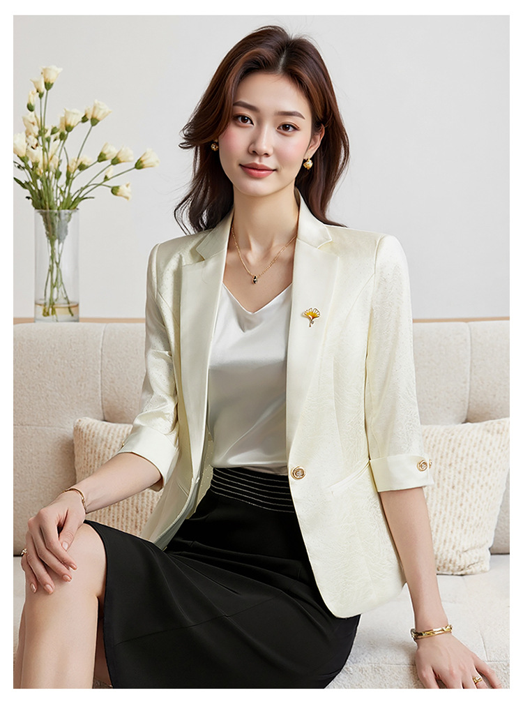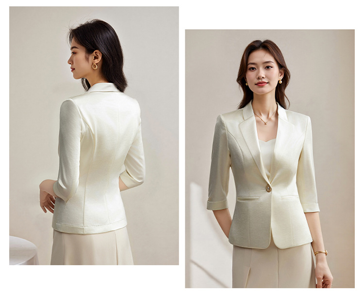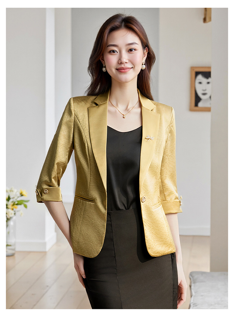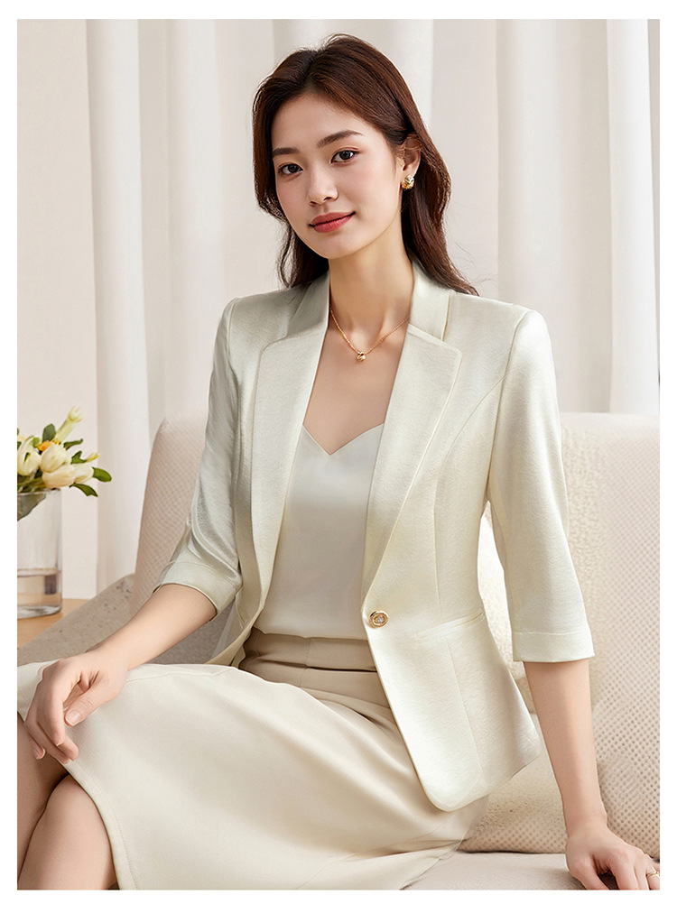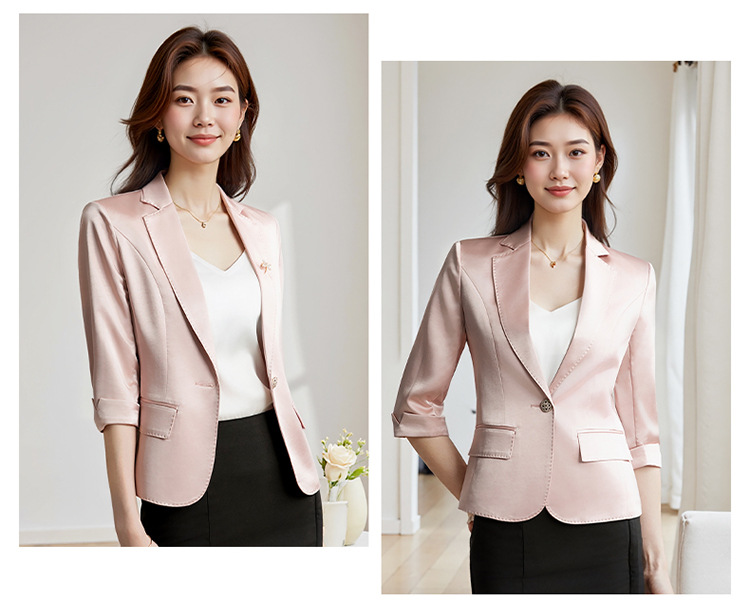 블랙 하이 엔드 Acetic Acid Satin 작은 세트 자켓 여성의 처진 여름 얇은 2025 새로운 도착 7 점 슬리브 탑스토어 가기
