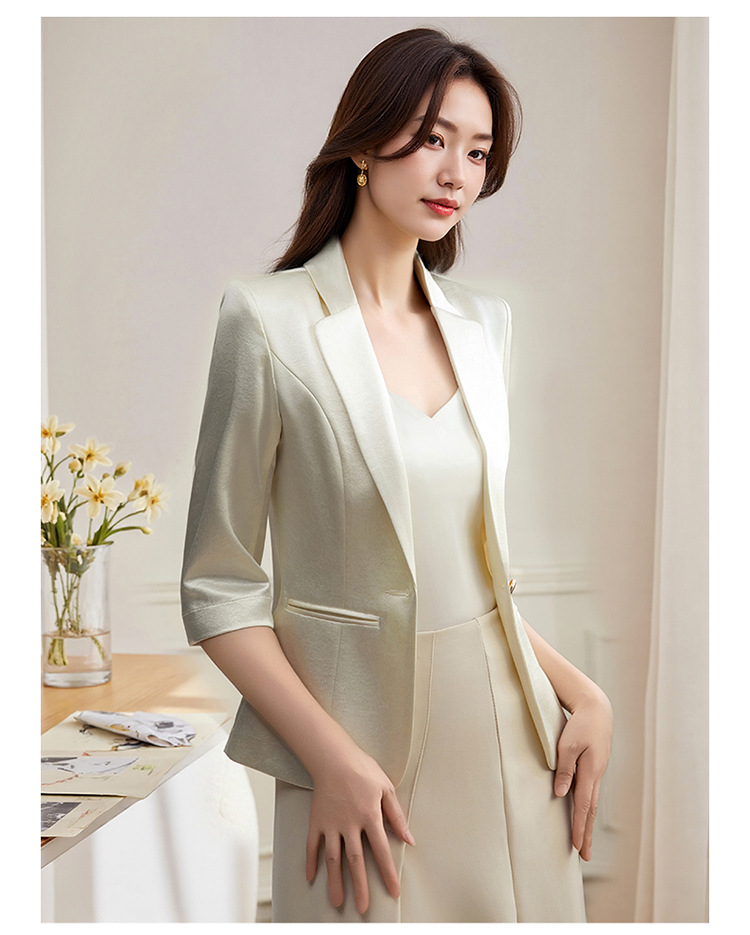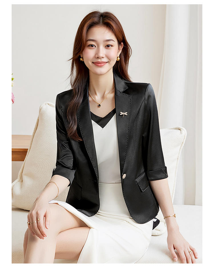 블랙 하이 엔드 Acetic Acid Satin 작은 세트 자켓 여성의 처진 여름 얇은 2025 새로운 도착 7 점 슬리브 탑