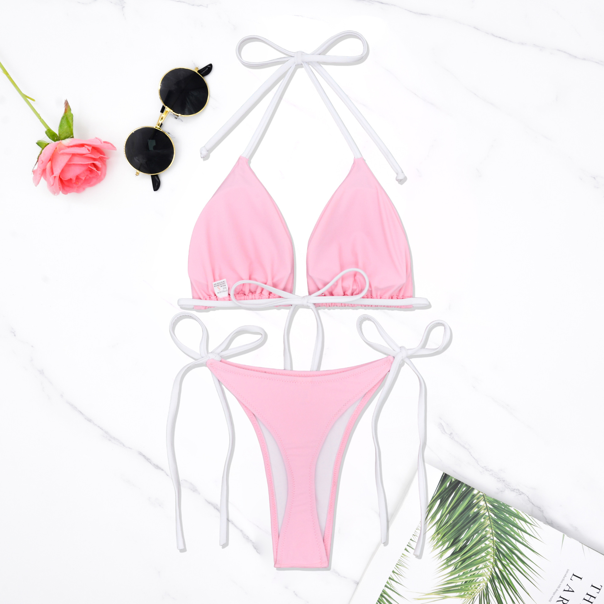 타이트한 미라클 의류 2025 분리형 단색 심플 섹시한 삼각형 비키니 유럽 및 미국 스타일 수영복 여성용 5075스토어 가기