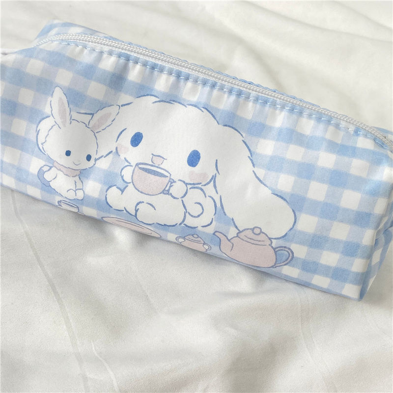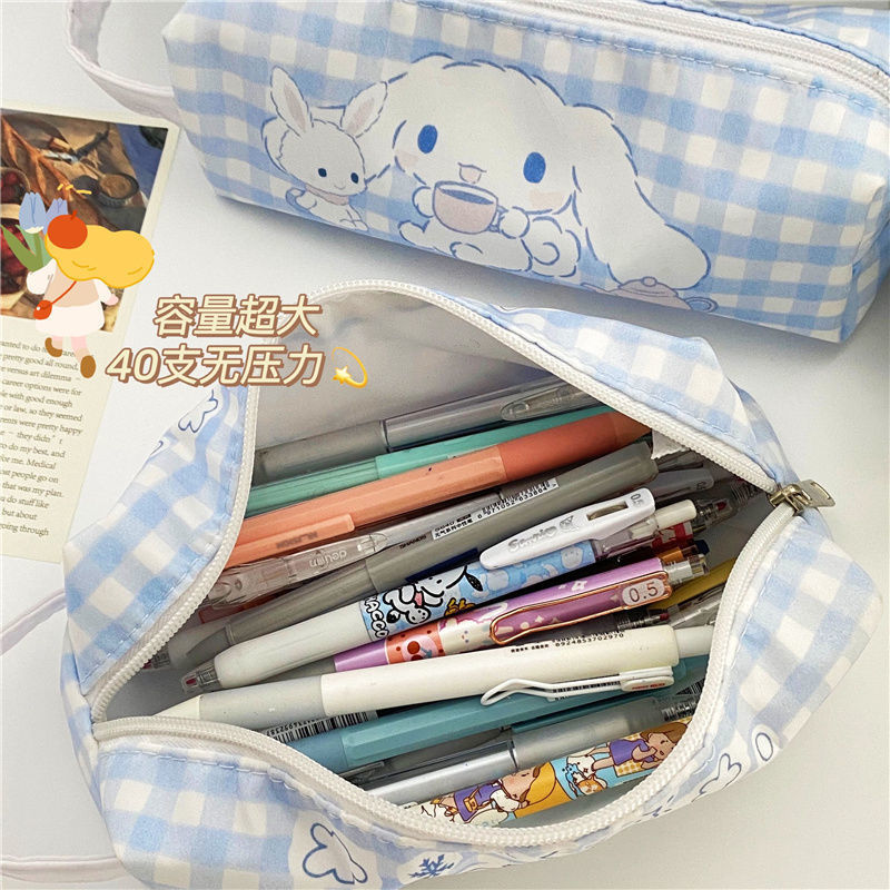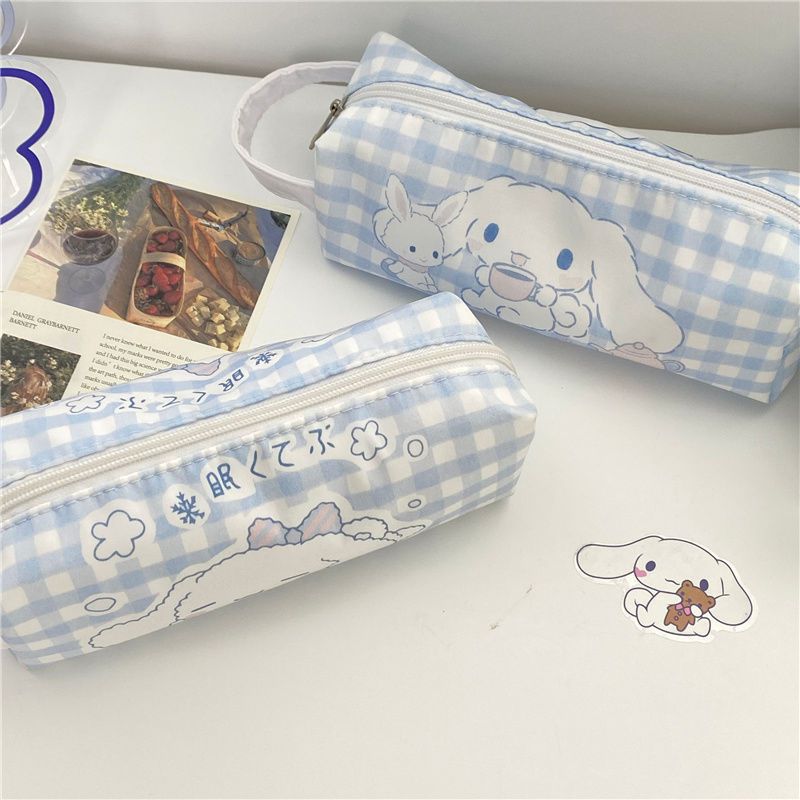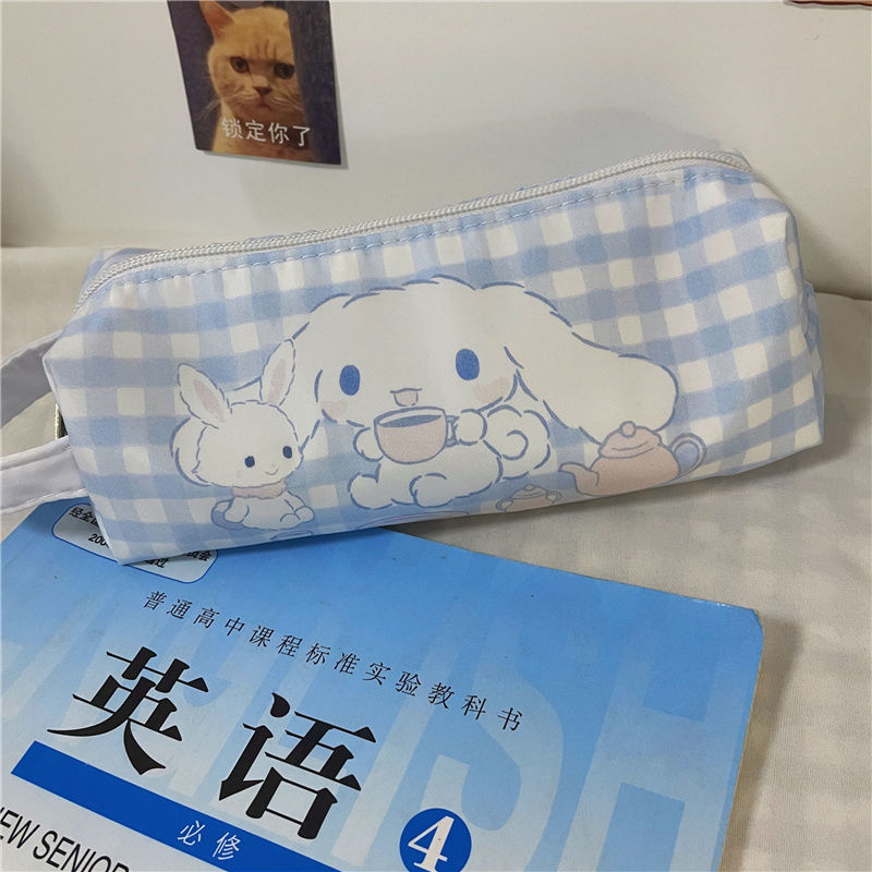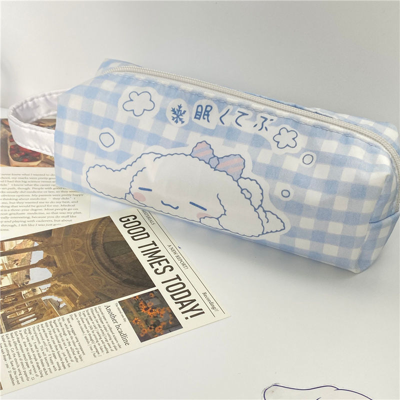 인 스타일 귀여운 창조적 인 유 구이 개 연필 가방 대용량 학생 높은 가치 만화 문구 상자 격자 무늬 보관 가방스토어 가기