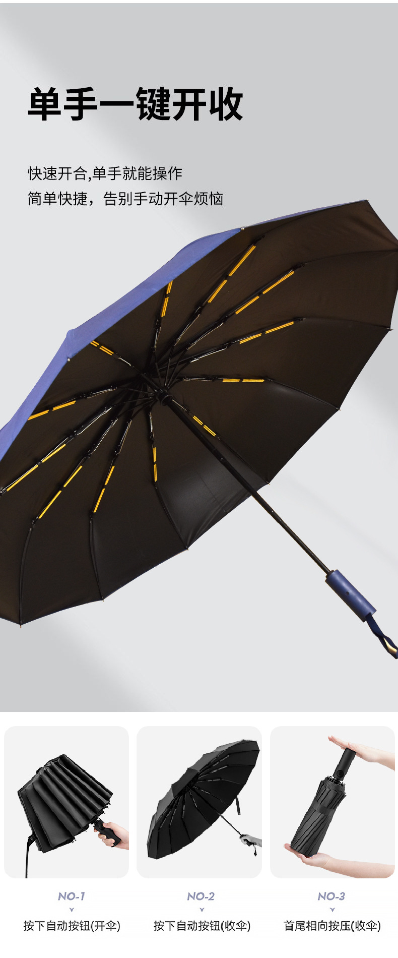 现货批发十骨双层反向自动雨伞加固伞骨商务三折叠伞礼品广告伞