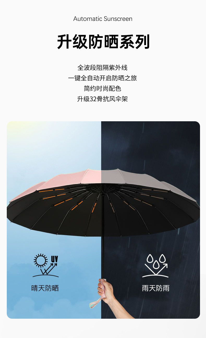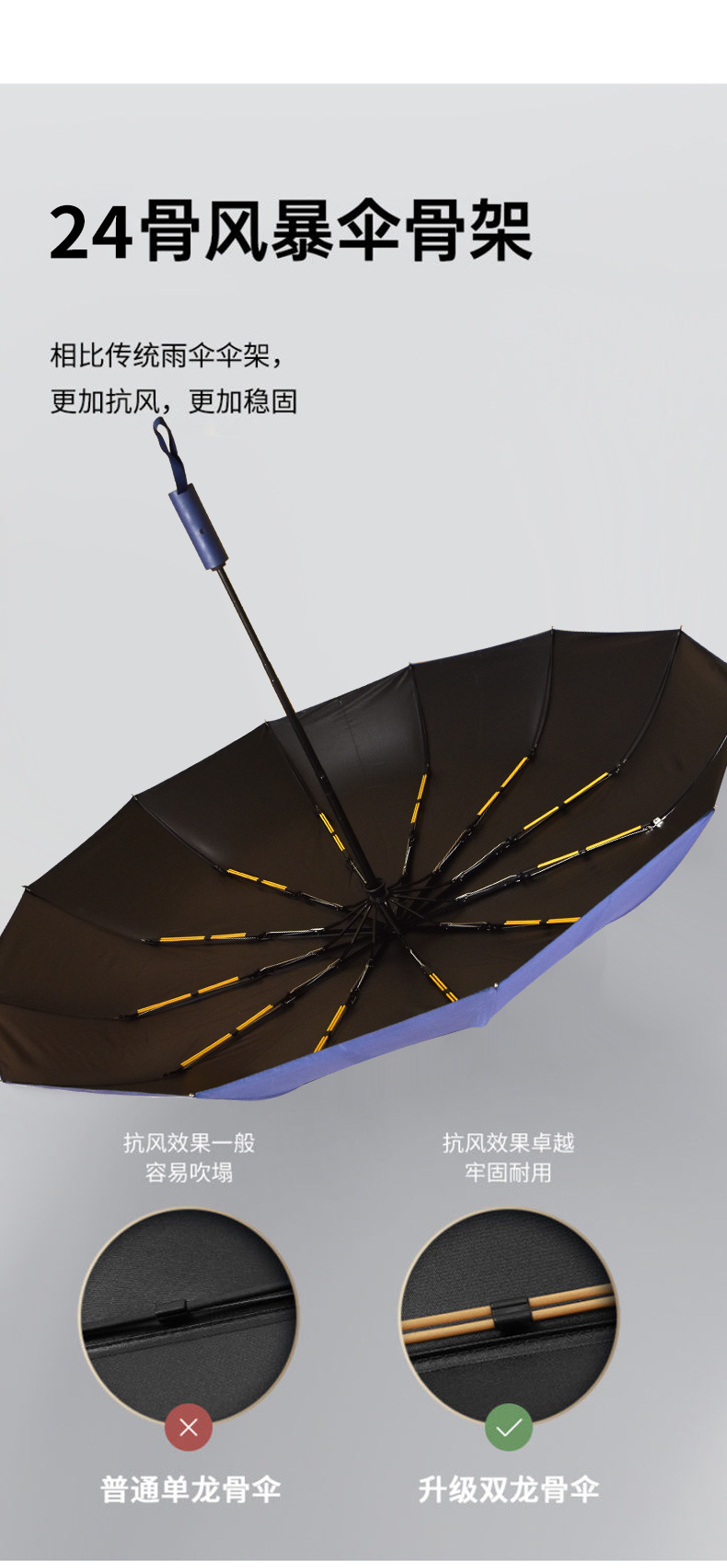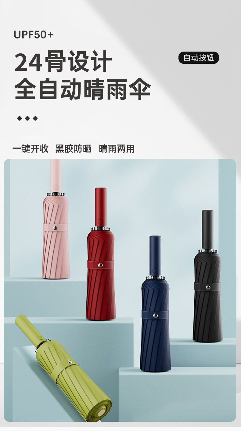 双龙骨自动晴雨伞24骨超硬雨伞批发防紫外线遮阳折叠雨伞便携