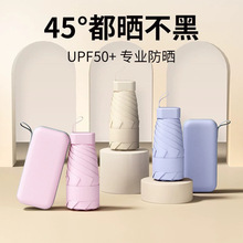 遮阳伞轻便小巧雨伞批发扁平防紫外线雨伞黑胶防晒雨伞五折6骨伞